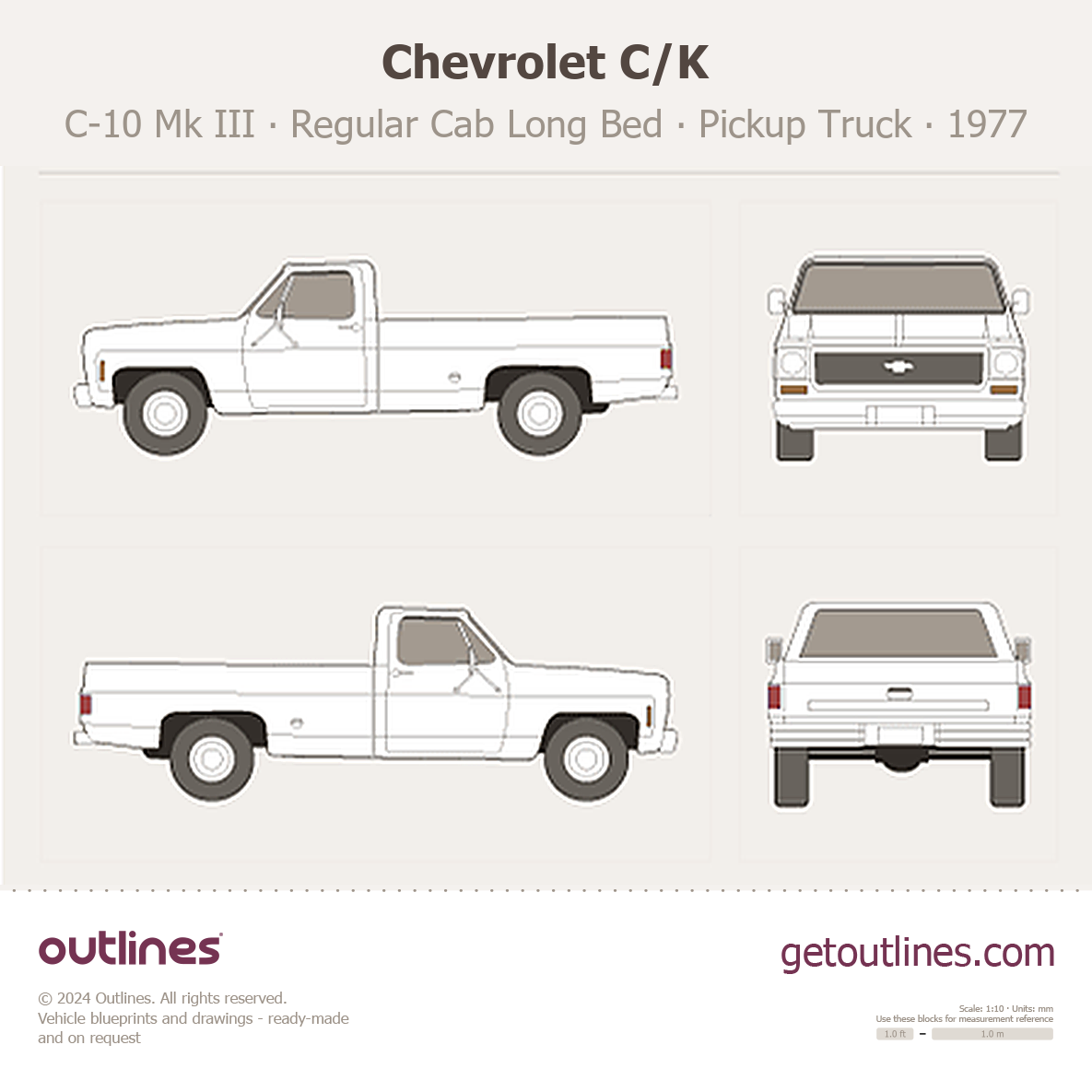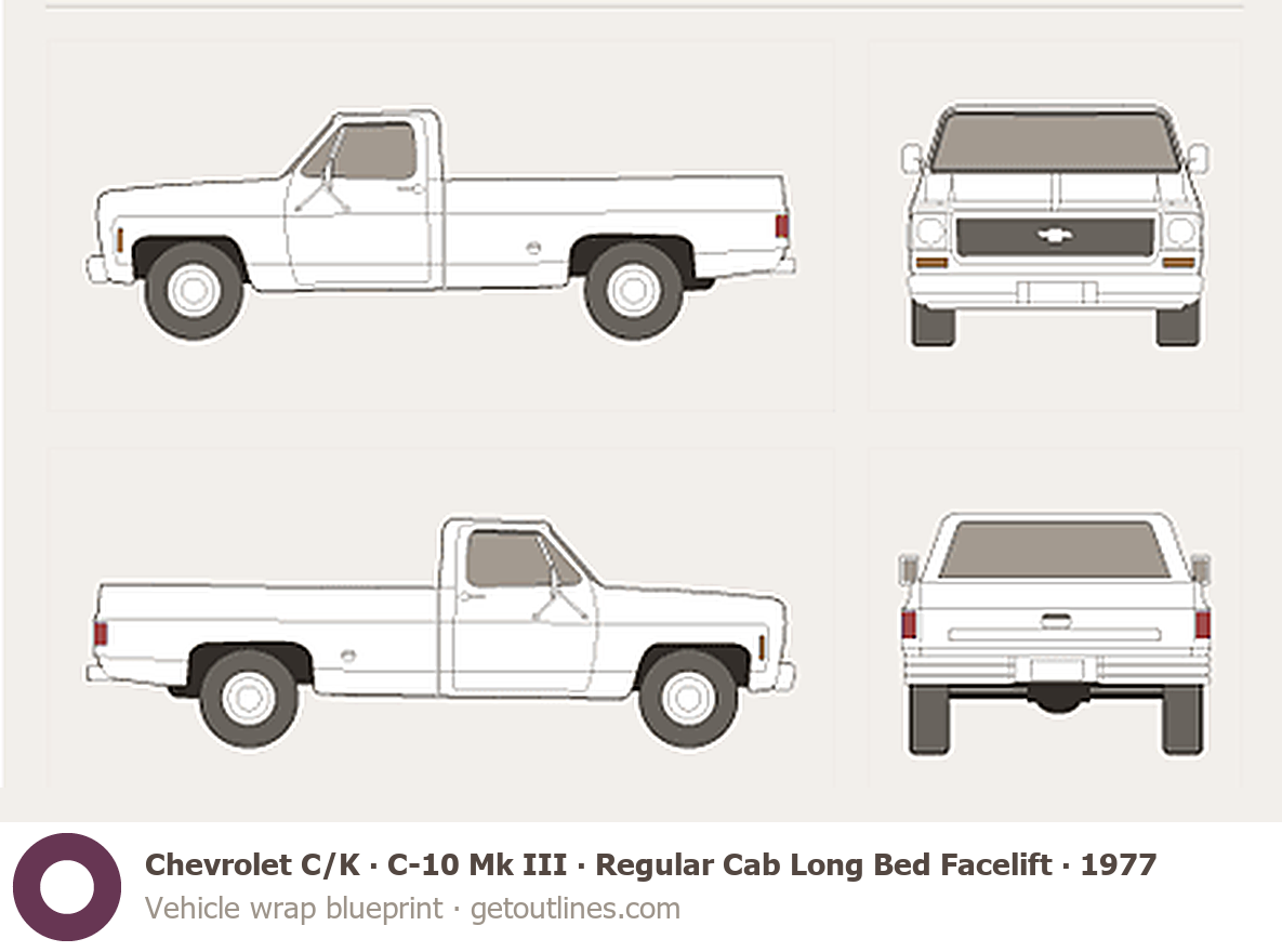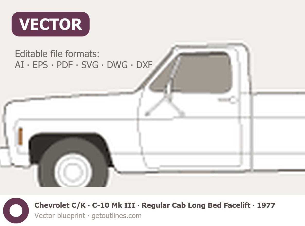 Buy this Chevrolet C/K C-10 Mk III blueprint and line drawing in high-quality editable vector file formats. Best for 3D and car wrap design.