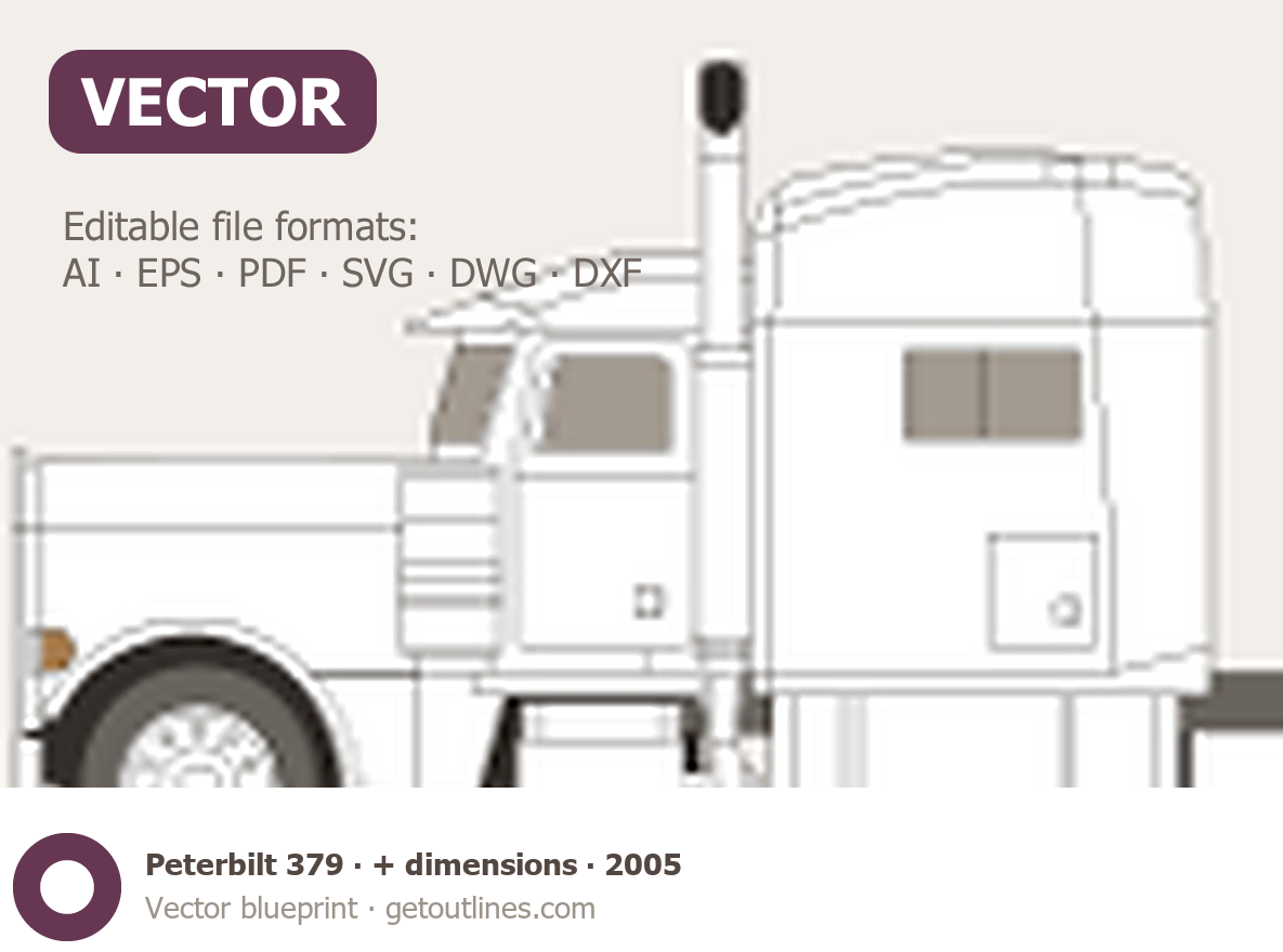 Buy this Peterbilt 379 blueprint and line drawing in high-quality editable vector file formats. Best for 3D and car wrap design.