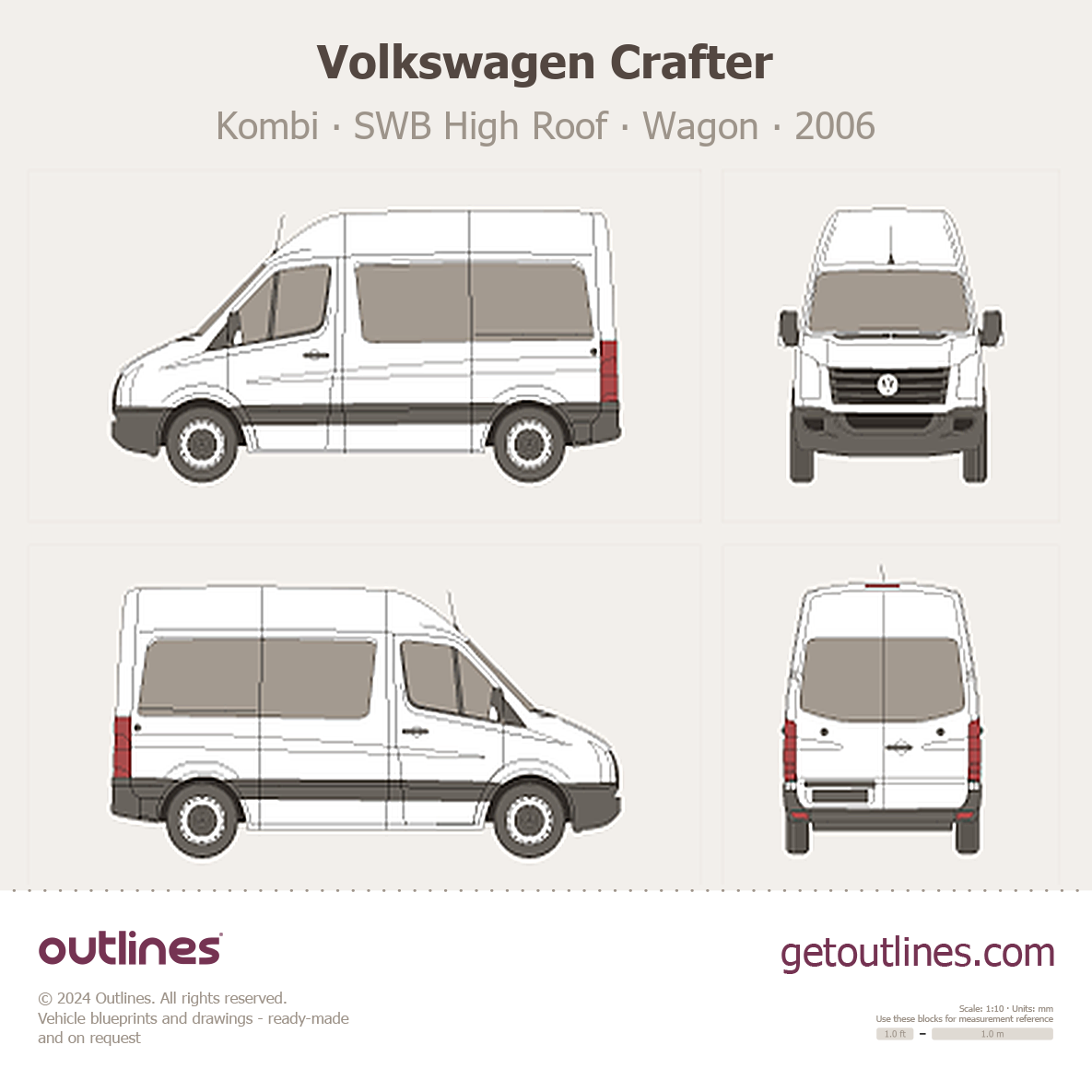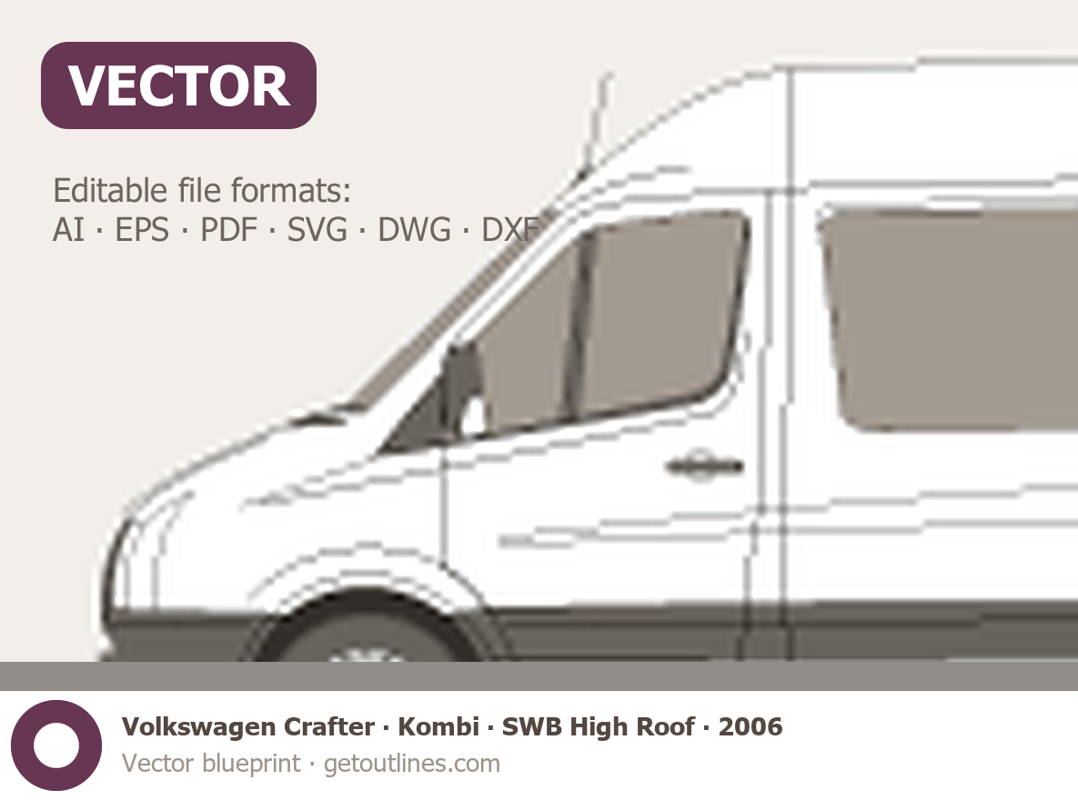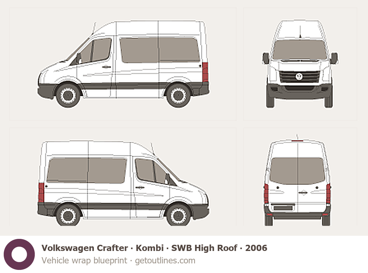 This 2006 Volkswagen Crafter Kombi SWB High Roof Wagon blueprint helps designers, wrap studios, and 3D artists simplify their workflow and save valuable time for creative work instead of routine tasks.