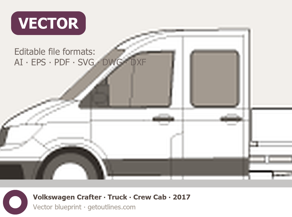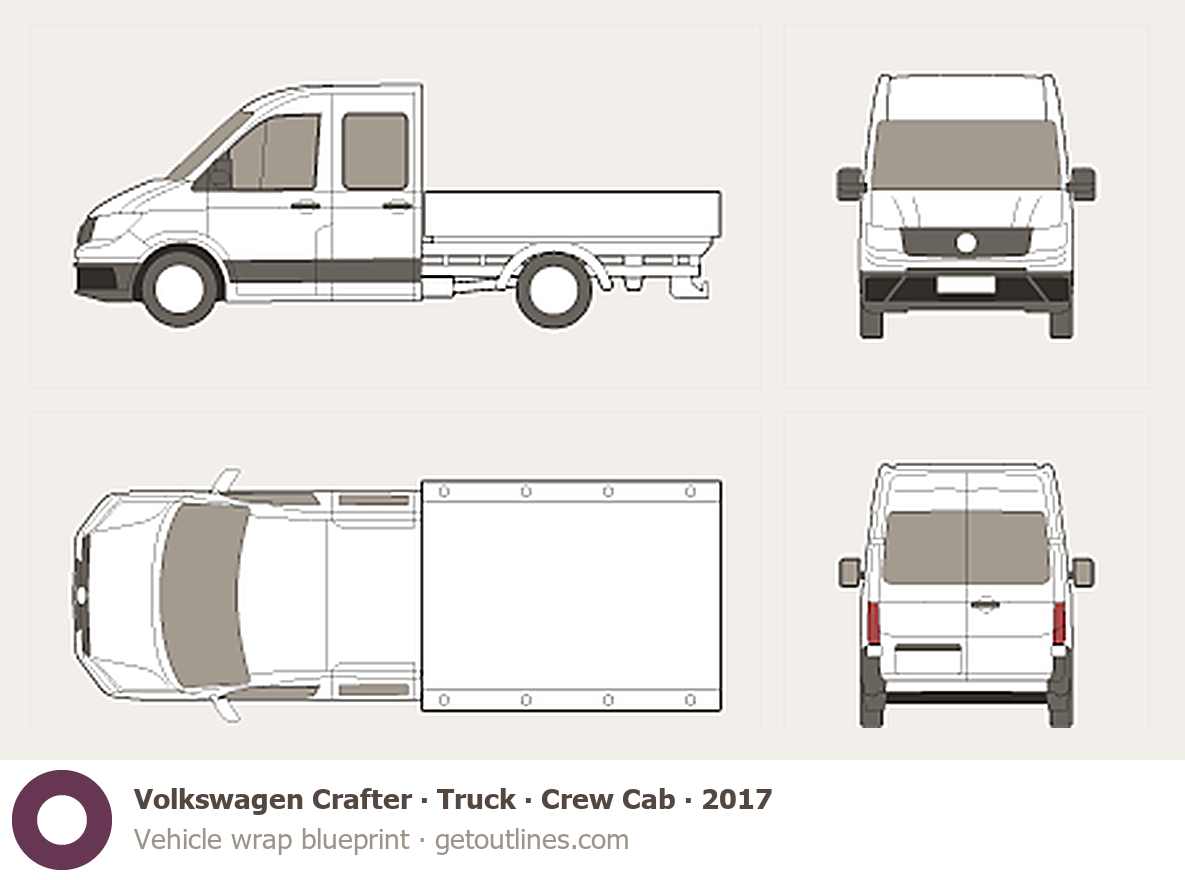 This 2017 Volkswagen Crafter Truck Crew Cab Pickup Truck blueprint helps designers, wrap studios, and 3D artists simplify their workflow and save valuable time for creative work instead of routine tasks.
