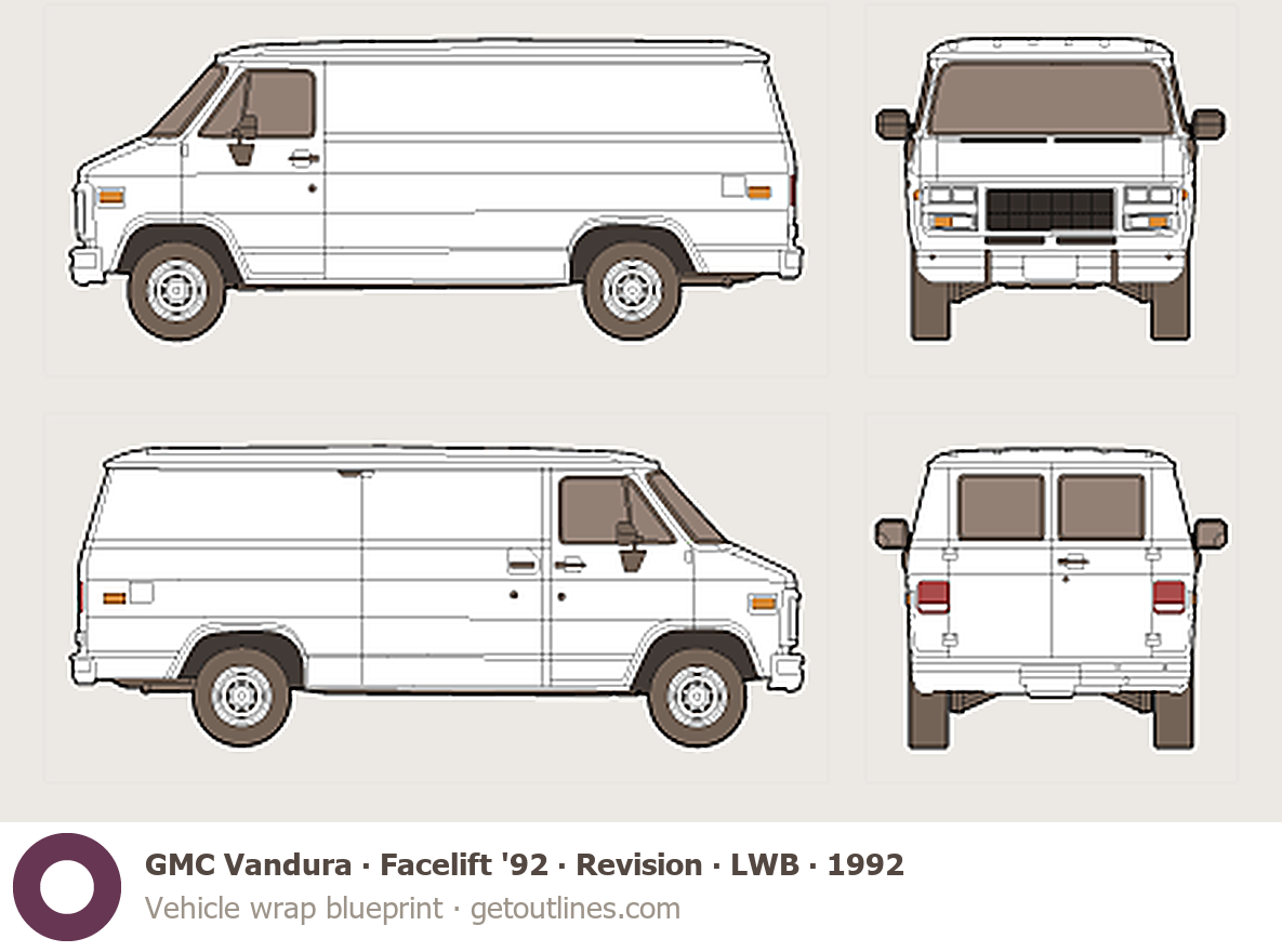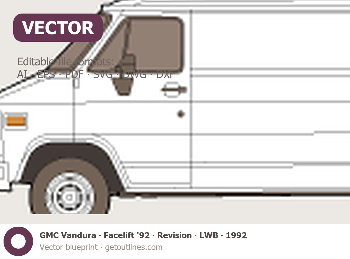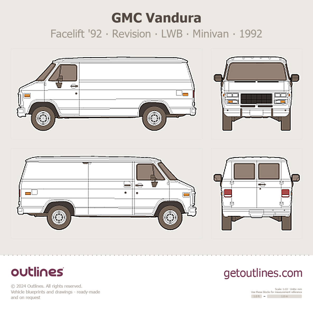 Buy this GMC Vandura Facelift '92 ∙ Revised blueprint and line drawing in high-quality editable vector file formats. Best for 3D and car wrap design.