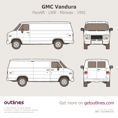 Buy this GMC Vandura Facelift '92 ∙ Revision blueprint and line drawing in high-quality editable vector file formats. Best for 3D and car wrap design.