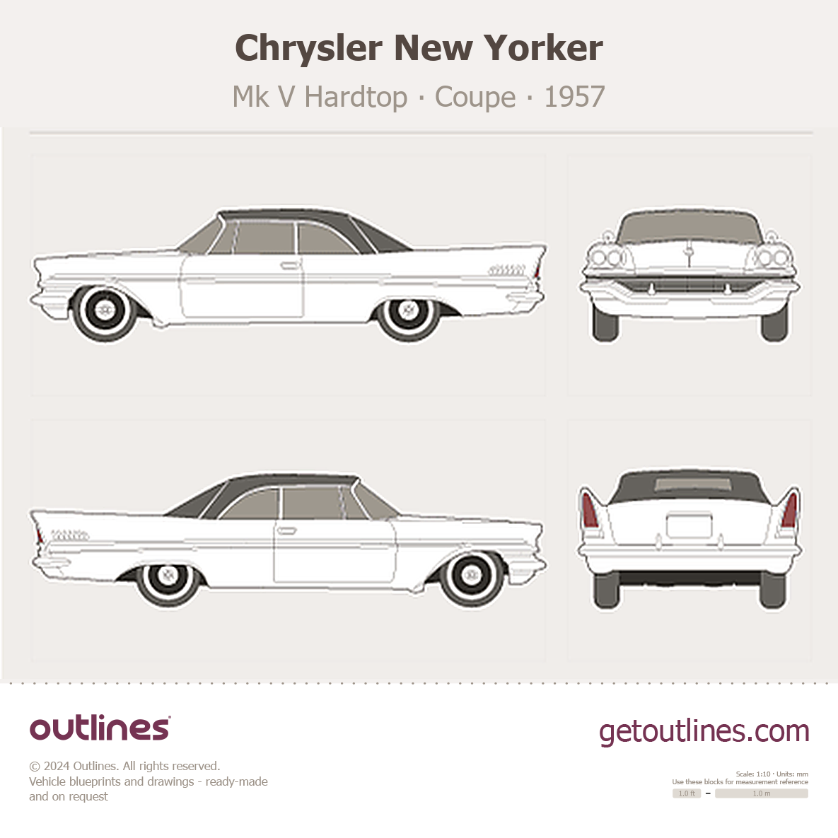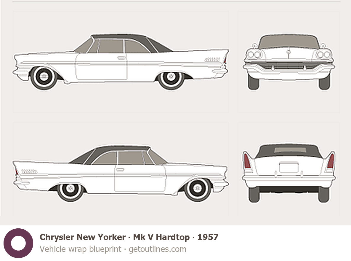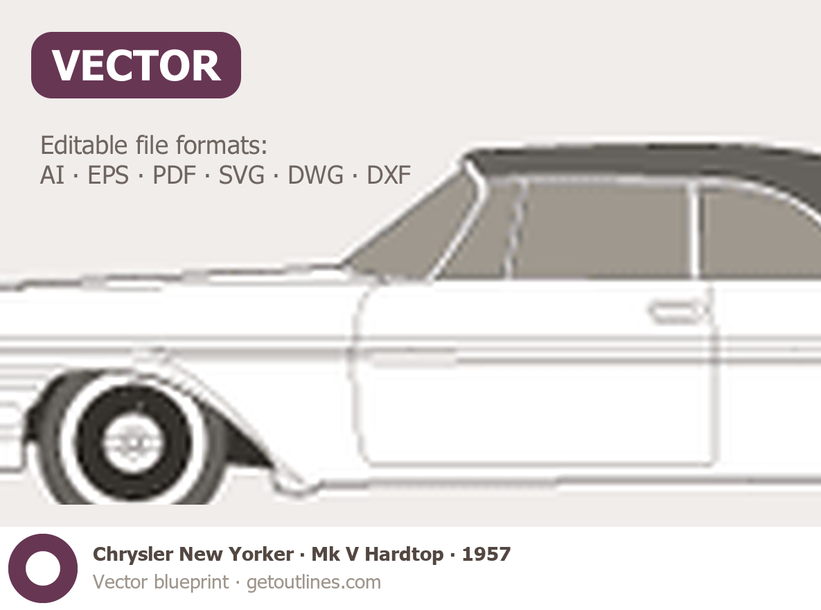 Buy this Chrysler New Yorker Mk V Hardtop blueprint and line drawing in high-quality editable vector file formats. Best for 3D and car wrap design.
