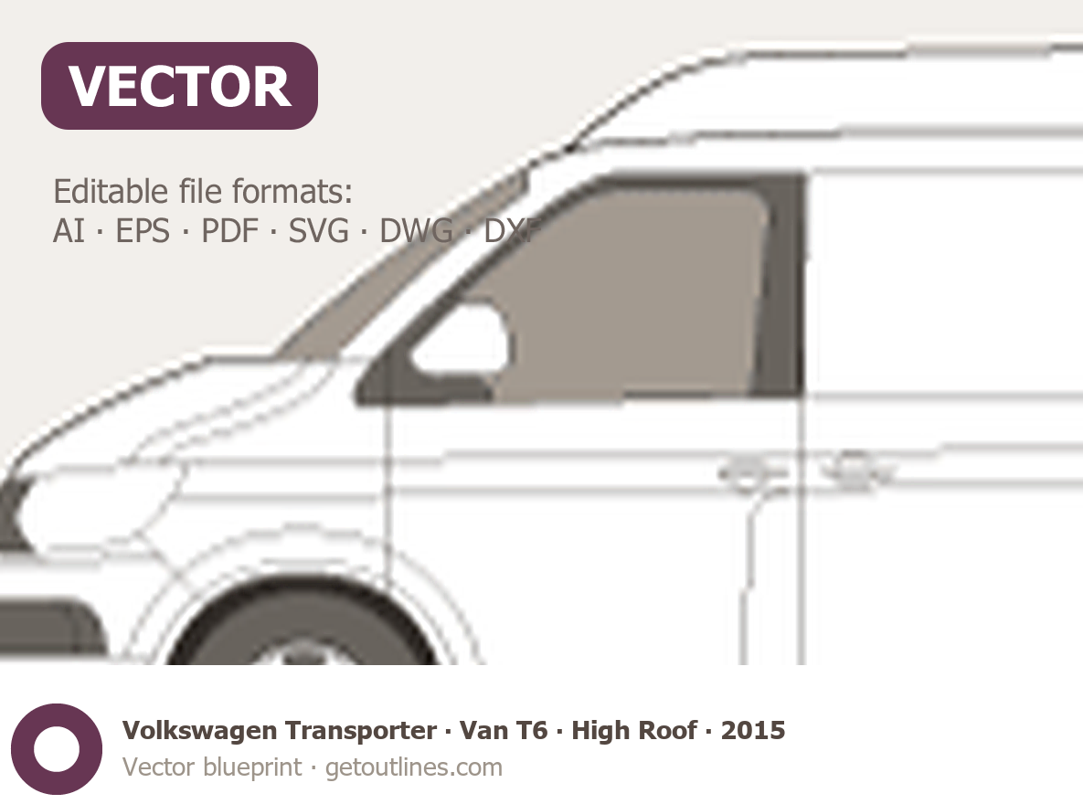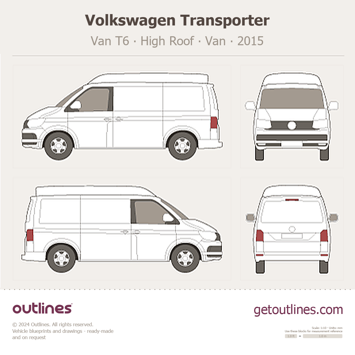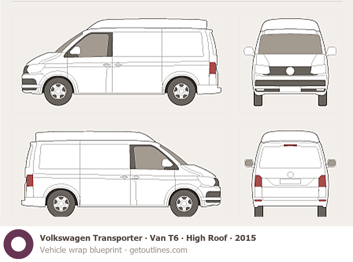 This 2015 Volkswagen Transporter Van T6 High Roof Van blueprint helps designers, wrap studios, and 3D artists simplify their workflow and save valuable time for creative work instead of routine tasks.