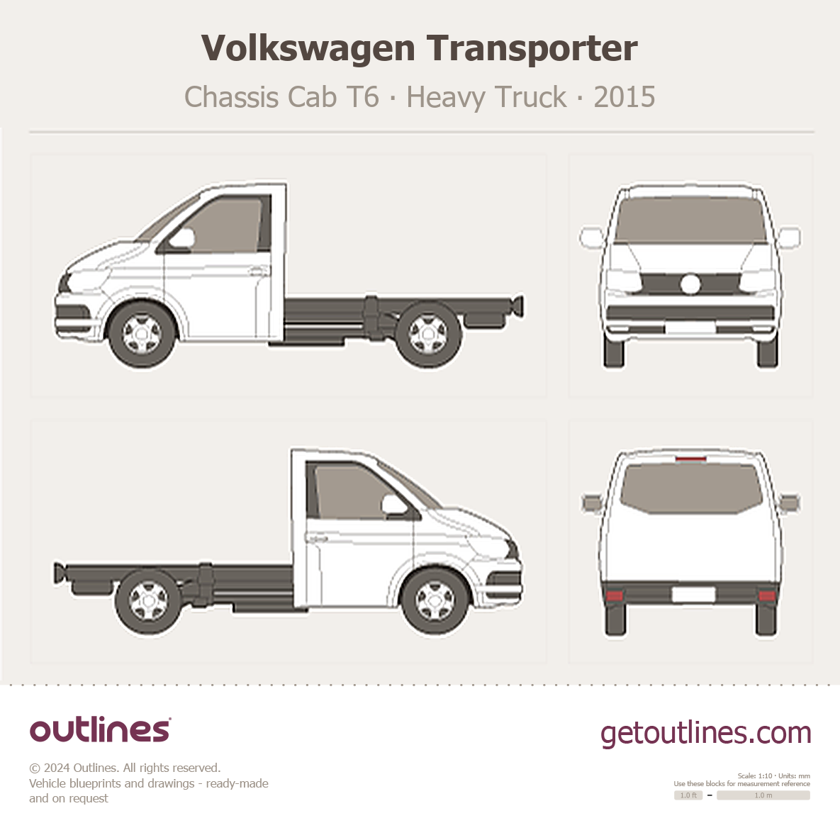 This is a blueprint of the Transporter, produced by carmaker Volkswagen in 2015 - Present (2025, 2026). It features a Heavy Truck body design and is classified as a Commercial vehicle.