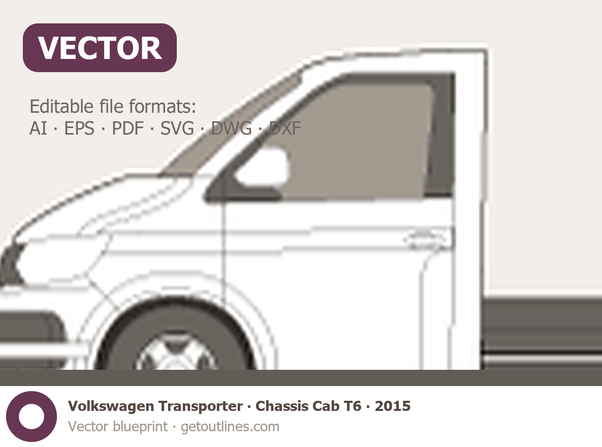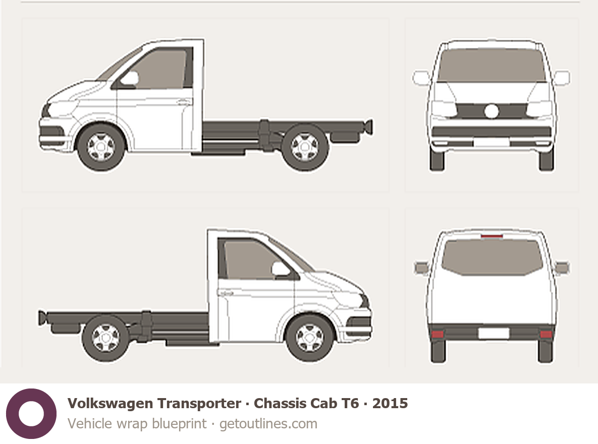 This 2015 Volkswagen Transporter Chassis Cab T6 Heavy Truck blueprint helps designers, wrap studios, and 3D artists simplify their workflow and save valuable time for creative work instead of routine tasks.