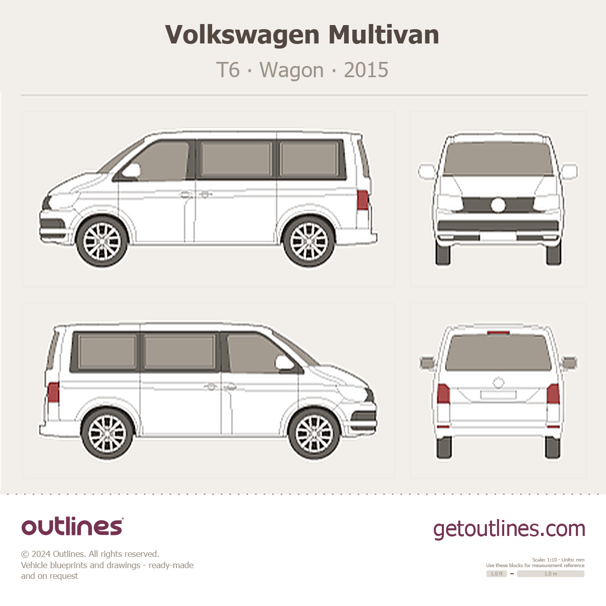 This is a blueprint of the Multivan, produced by carmaker Volkswagen in 2015 - Present (2025, 2026). It features a Wagon body design and is classified as a Family vehicle.