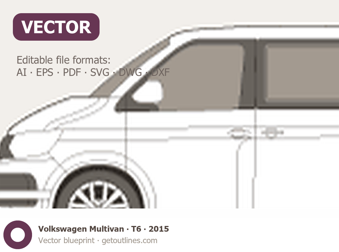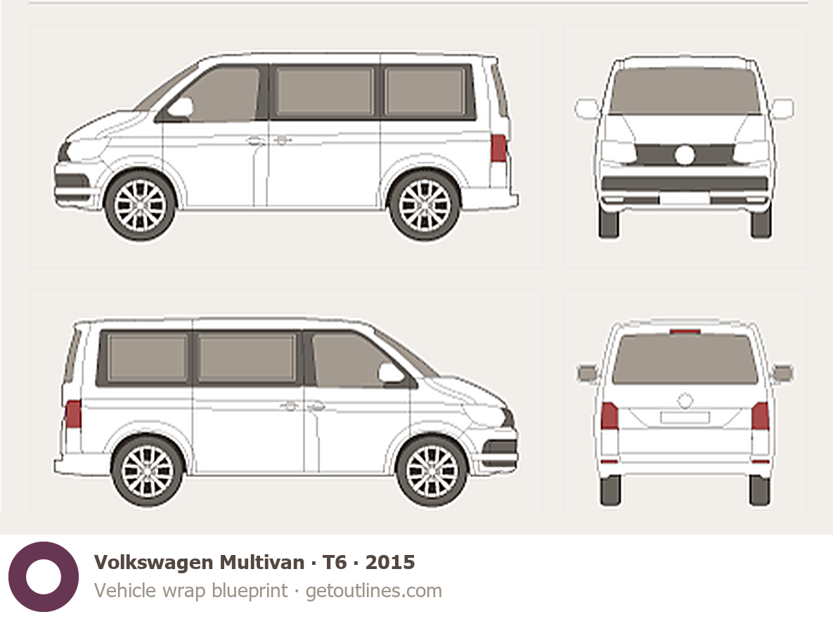 This 2015 Volkswagen Multivan T6 Wagon blueprint helps designers, wrap studios, and 3D artists simplify their workflow and save valuable time for creative work instead of routine tasks.
