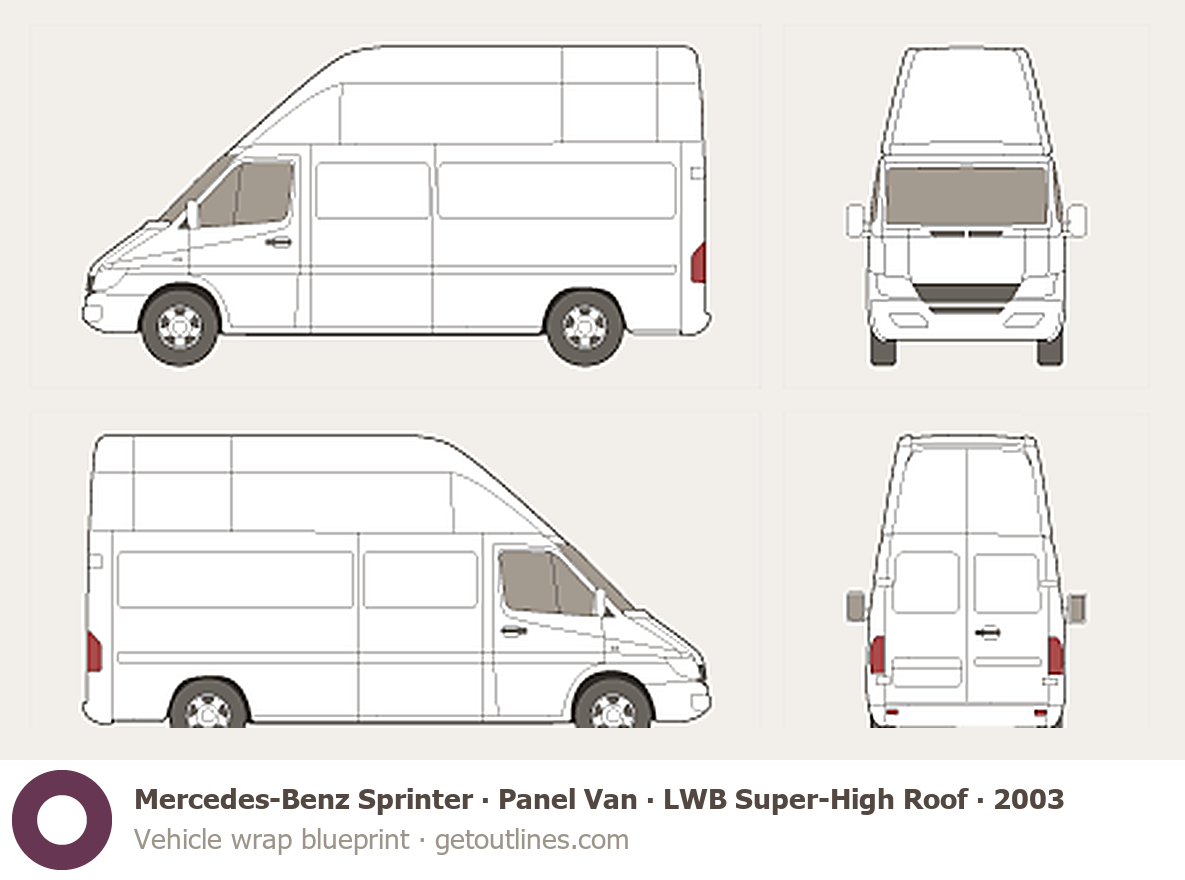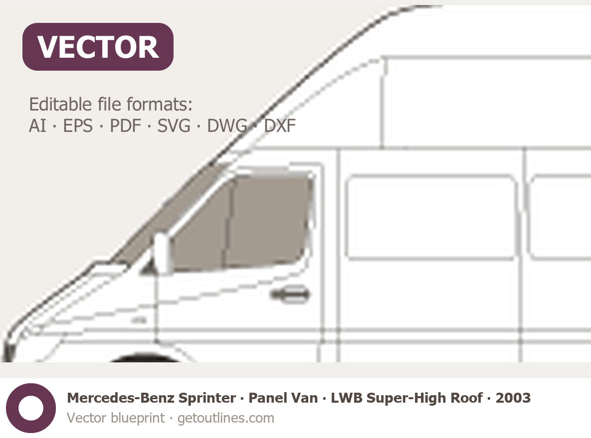 Buy this Mercedes-Benz Sprinter Panel Van blueprint and line drawing in high-quality editable vector file formats. Best for 3D and car wrap design.