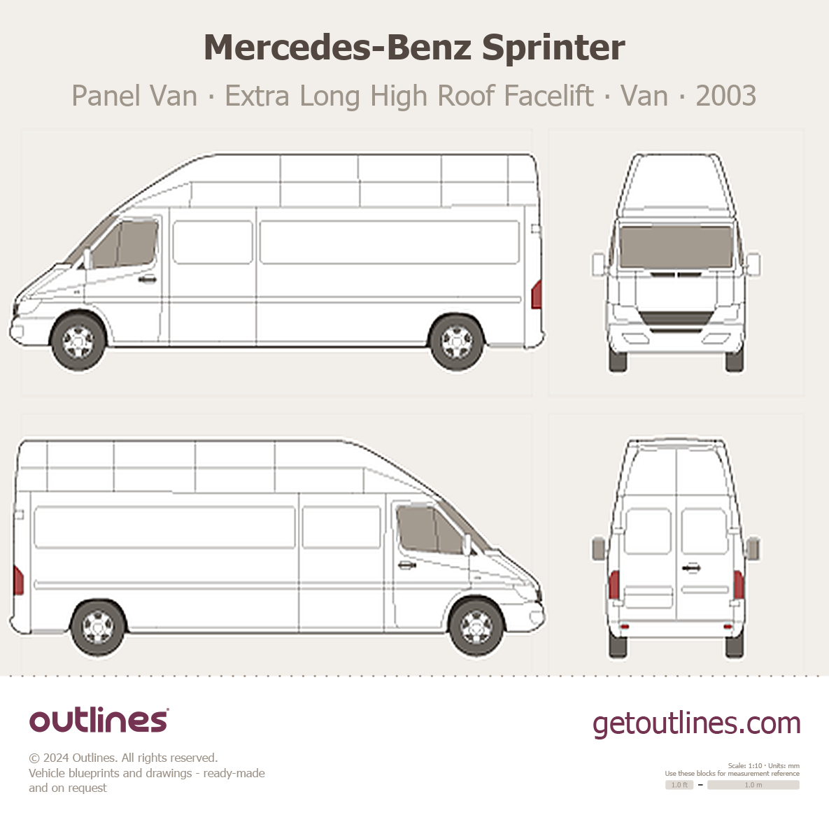 Buy this Mercedes-Benz Sprinter Panel Van blueprint and line drawing in high-quality editable vector file formats. Best for 3D and car wrap design.