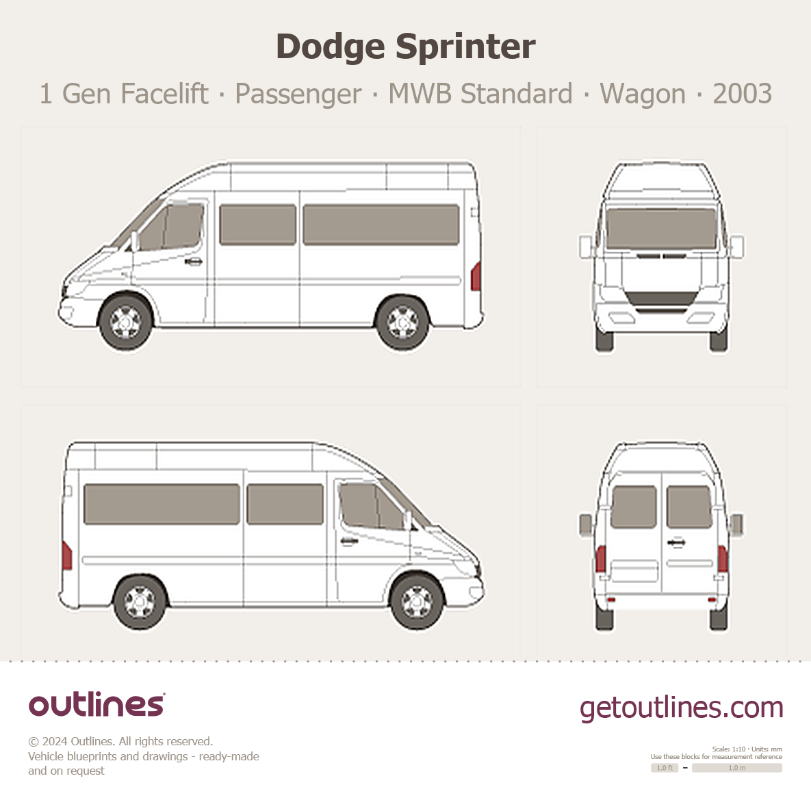 Buy this Dodge Sprinter 1 Gen Facelift ∙ Passenger blueprint and line drawing in high-quality editable vector file formats. Best for 3D and car wrap design.
