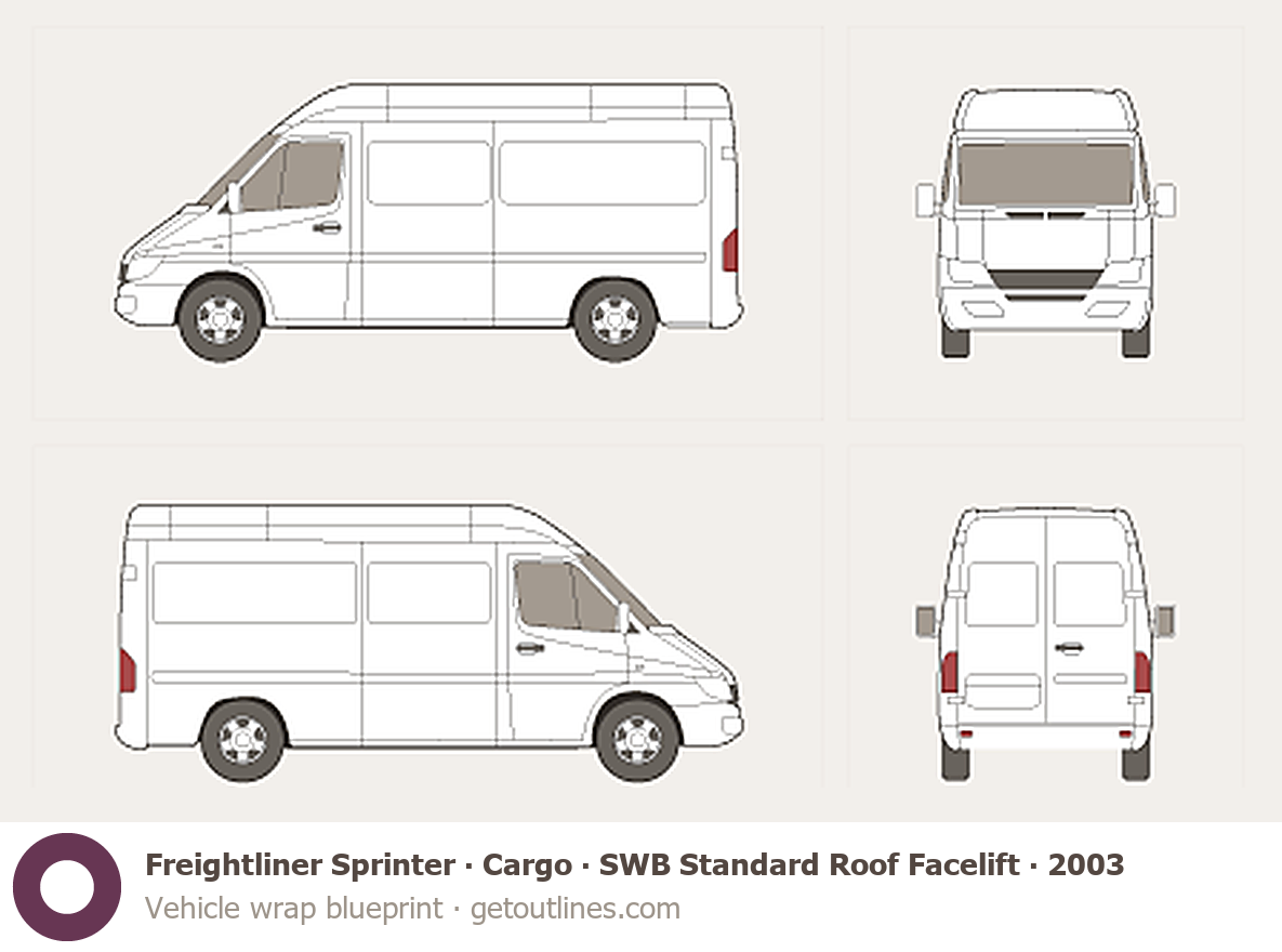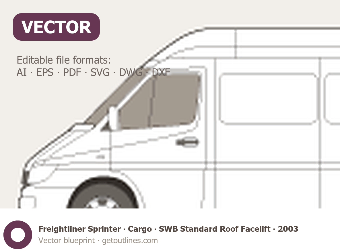 Buy this Freightliner Sprinter Cargo blueprint and line drawing in high-quality editable vector file formats. Best for 3D and car wrap design.