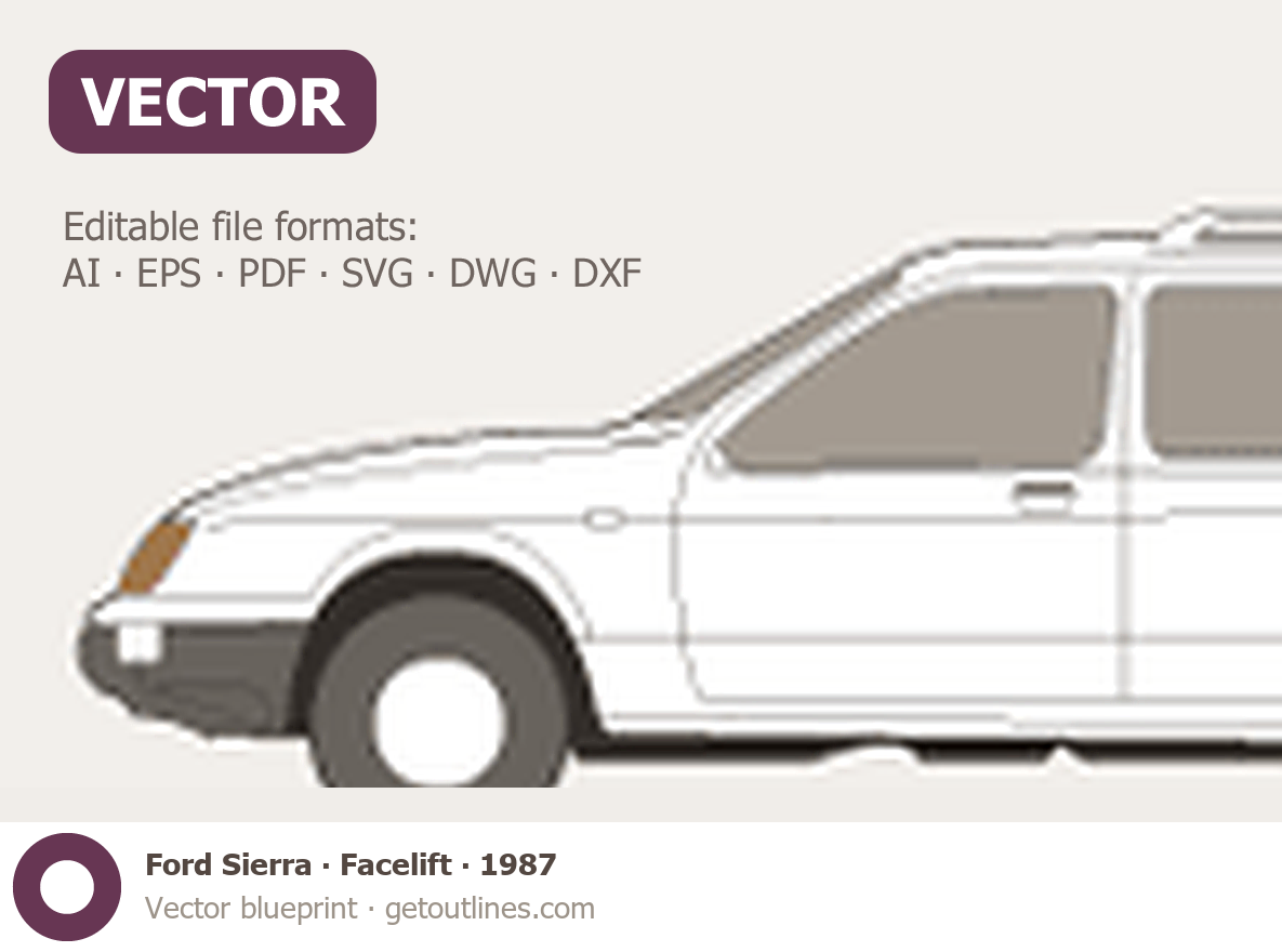 This 1987 Ford Sierra Facelift Wagon blueprint helps designers, wrap studios, and 3D artists simplify their workflow and save valuable time for creative work instead of routine tasks.