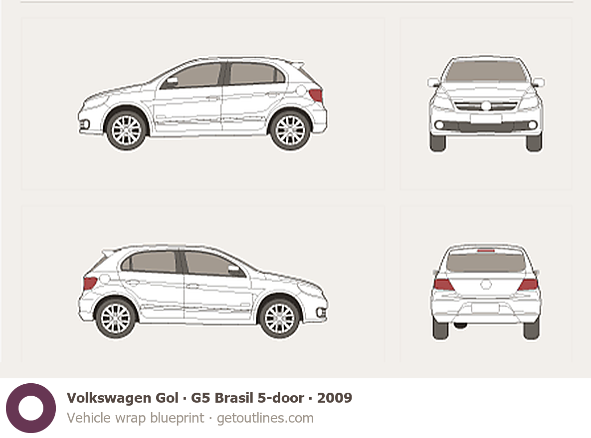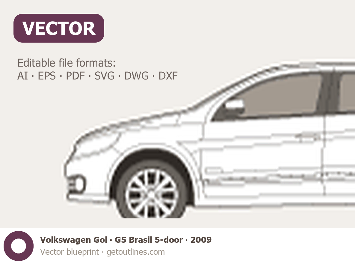 Buy this Volkswagen Gol blueprint and line drawing in high-quality editable vector file formats. Best for 3D and car wrap design.