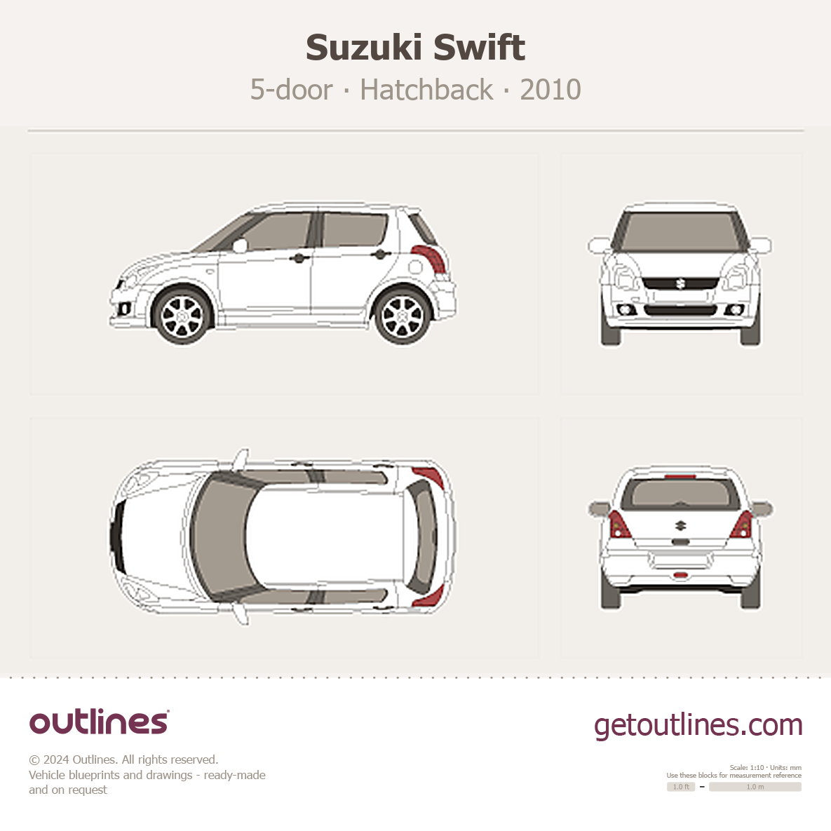 This is a blueprint of the Swift, produced by carmaker Suzuki in 2010 - Present (2025, 2026). It features a Hatchback body design and is classified as a Compact vehicle.
