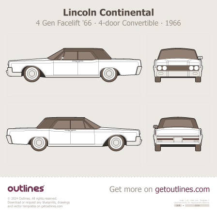 Buy this Lincoln Continental 4 Gen Facelift '66 blueprint and line drawing in high-quality editable vector file formats. Best for 3D and car wrap design.