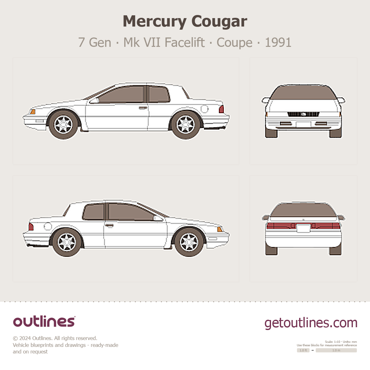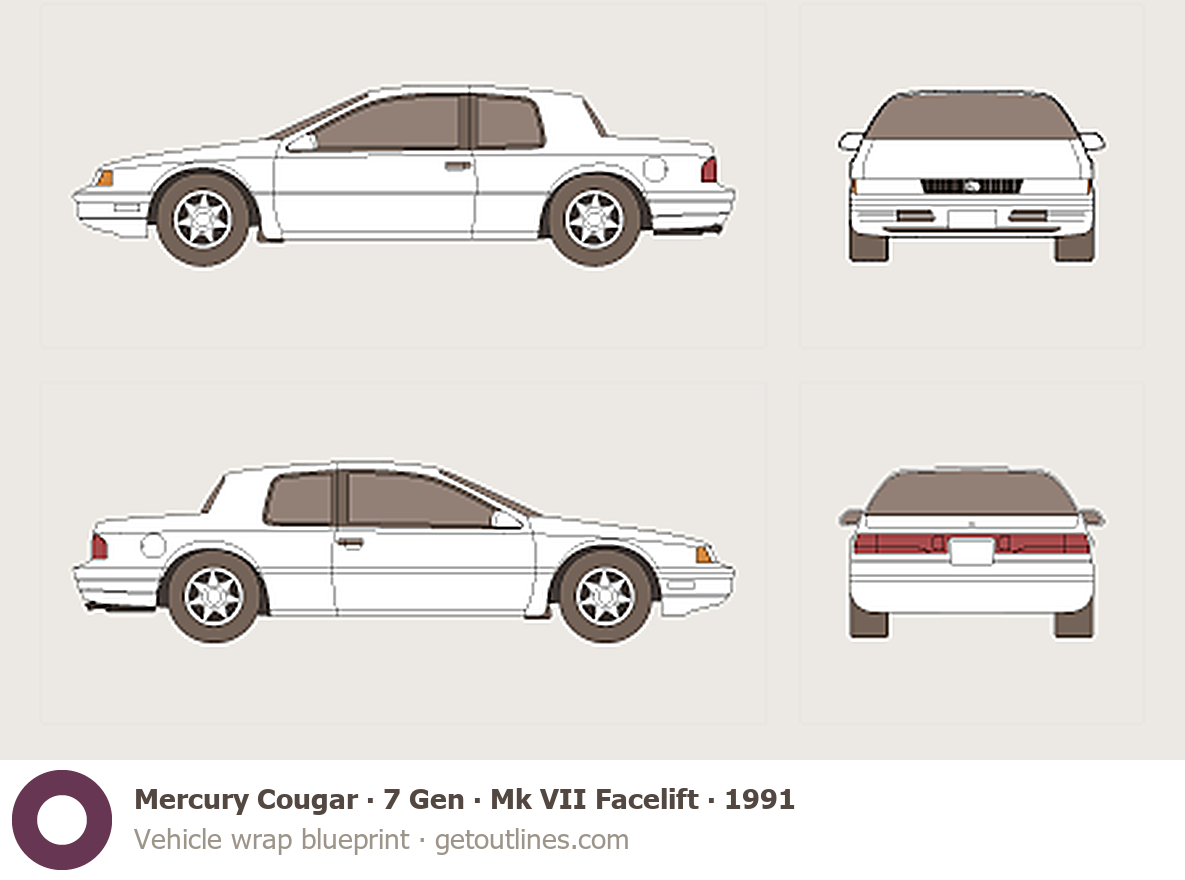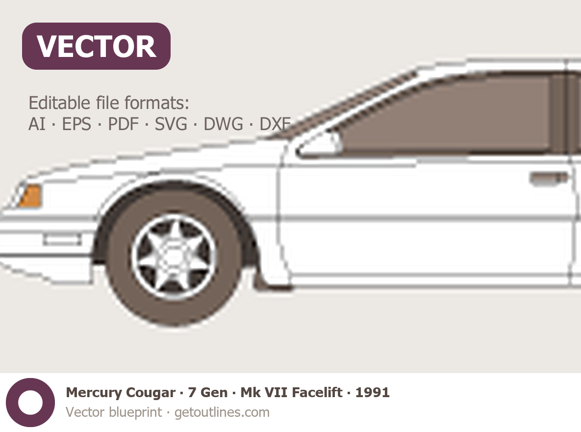 Buy this Mercury Cougar 7 Gen ∙ Mk VII Facelift blueprint and line drawing in high-quality editable vector file formats. Best for 3D and car wrap design.