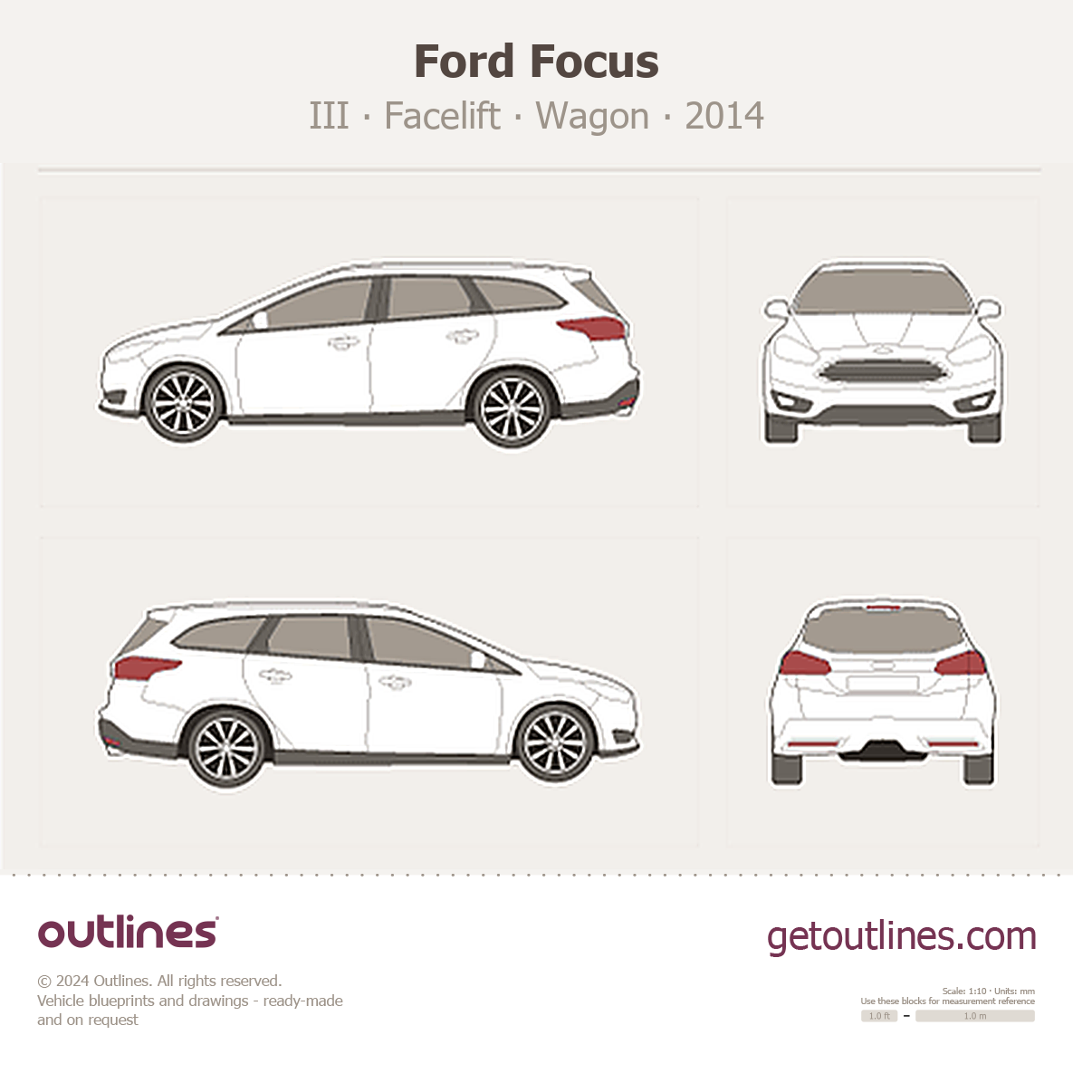 This is a blueprint of the Focus, produced by carmaker Ford in 2014 - Present (2025, 2026). It features a Wagon body design and is classified as a Family vehicle.