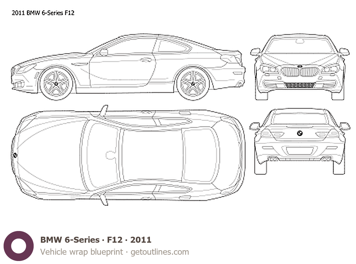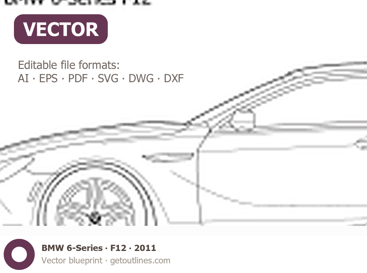 Buy this BMW 6-Series F12 blueprint and line drawing in high-quality editable vector file formats. Best for 3D and car wrap design.