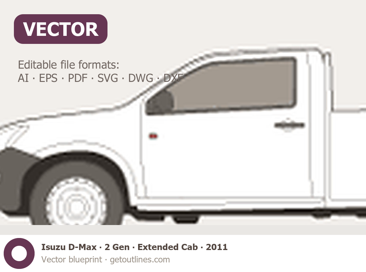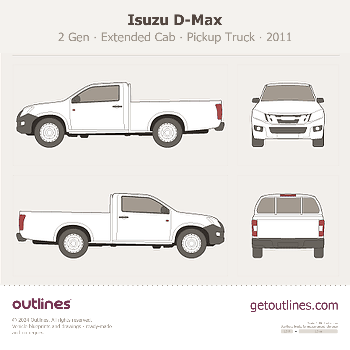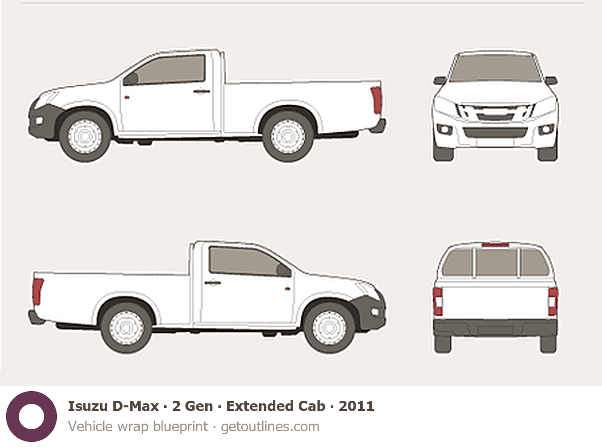 This 2011 Isuzu D-Max 2 Gen Extended Cab Pickup Truck blueprint helps designers, wrap studios, and 3D artists simplify their workflow and save valuable time for creative work instead of routine tasks.