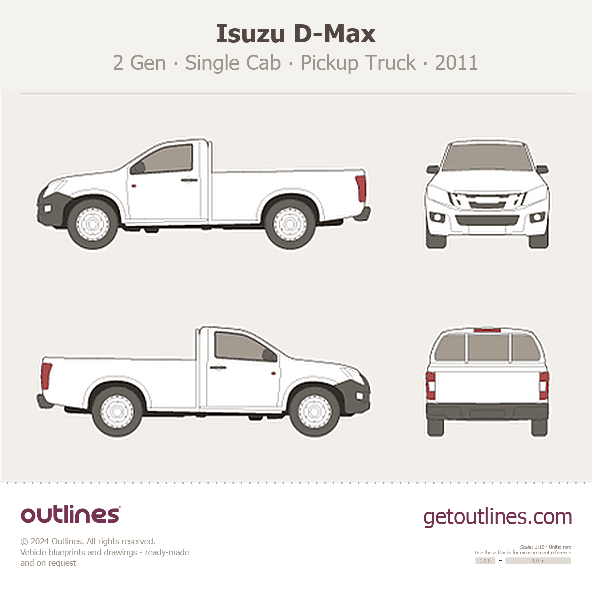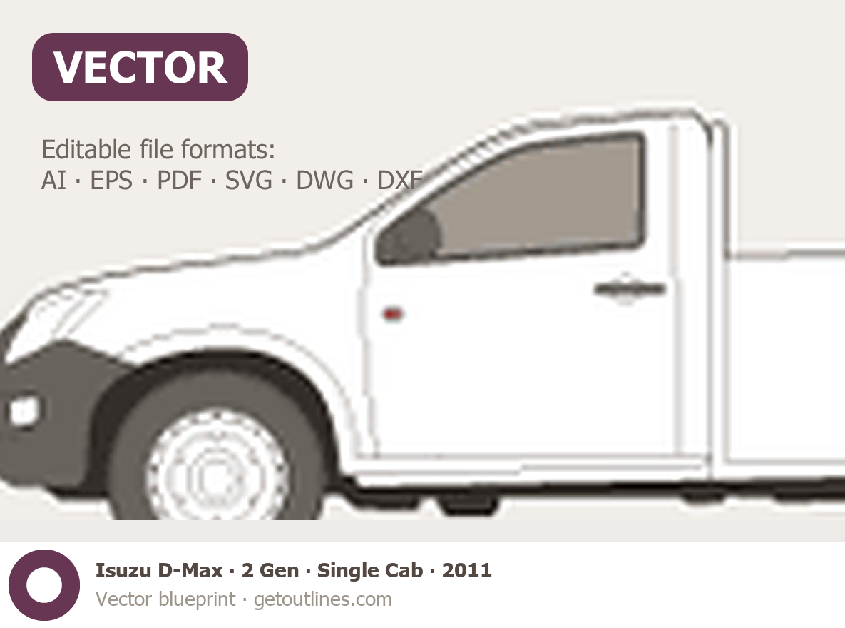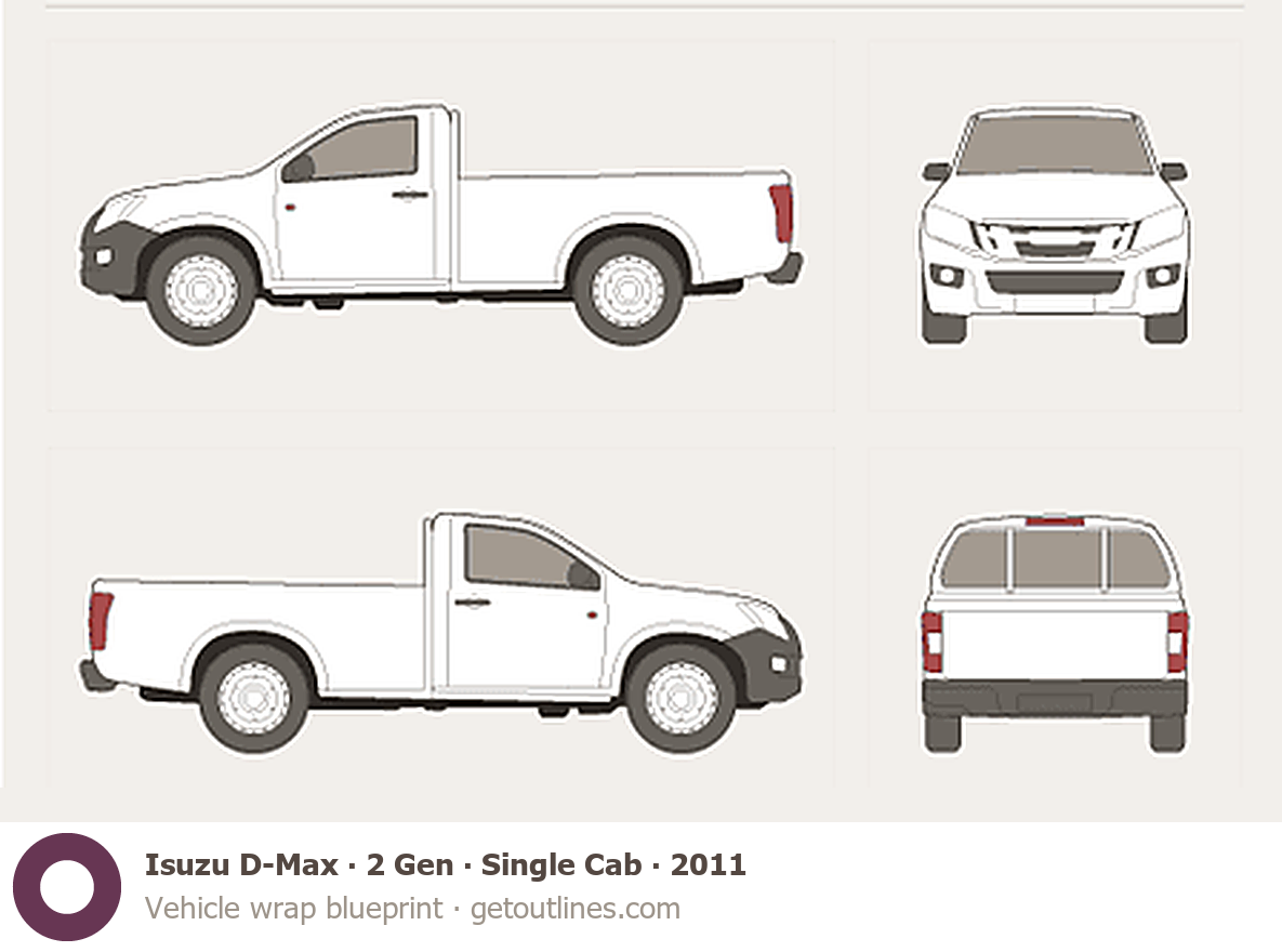 This 2011 Isuzu D-Max 2 Gen Single Cab Pickup Truck blueprint helps designers, wrap studios, and 3D artists simplify their workflow and save valuable time for creative work instead of routine tasks.