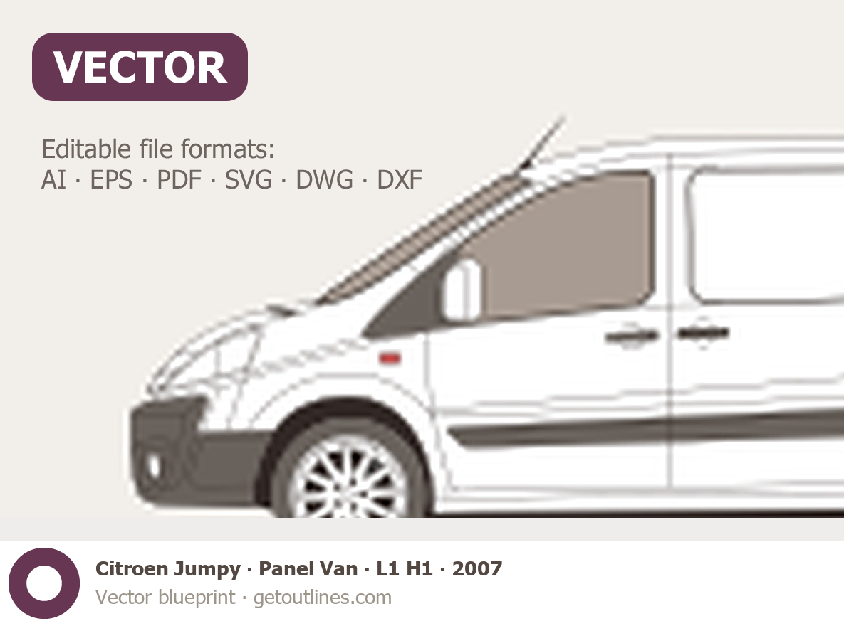 Buy this Citroen Jumpy Panel Van blueprint and line drawing in high-quality editable vector file formats. Best for 3D and car wrap design.
