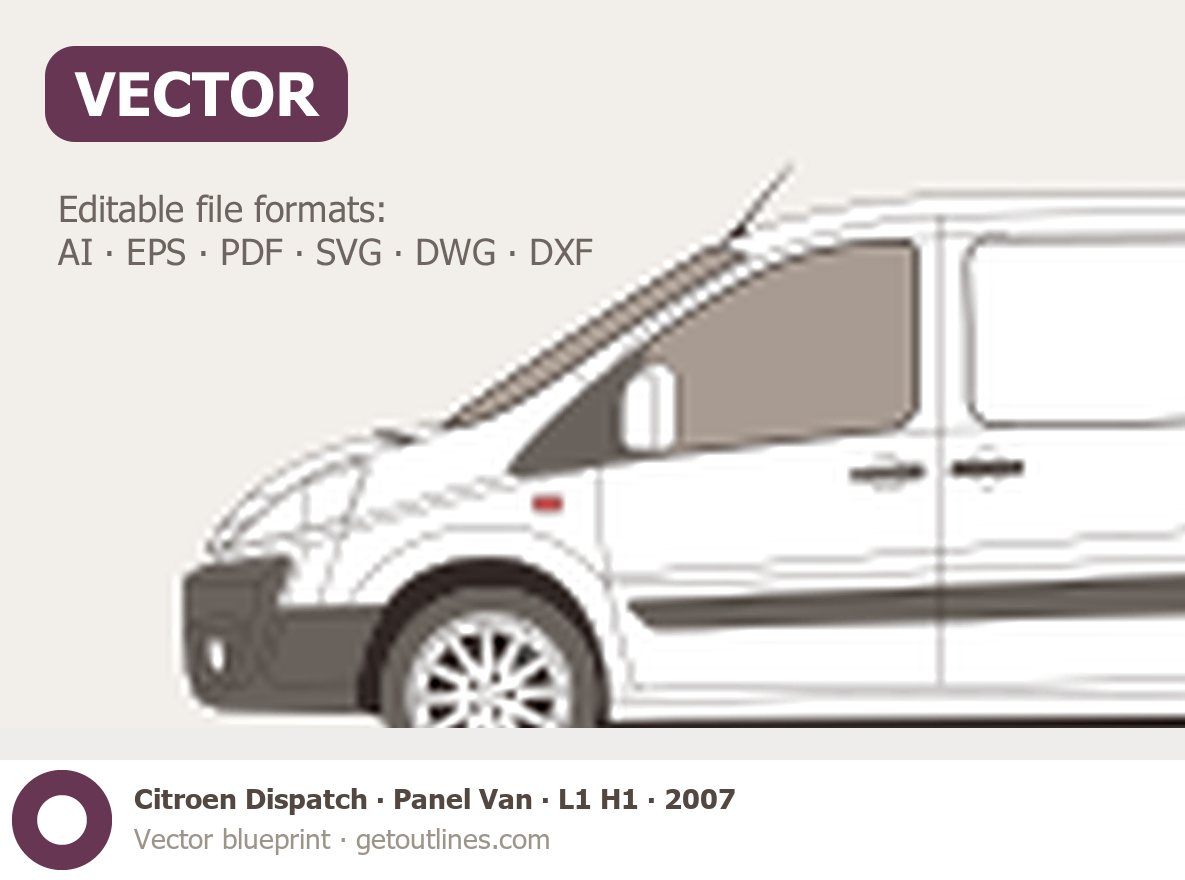 Buy this Citroen Dispatch Panel Van blueprint and line drawing in high-quality editable vector file formats. Best for 3D and car wrap design.