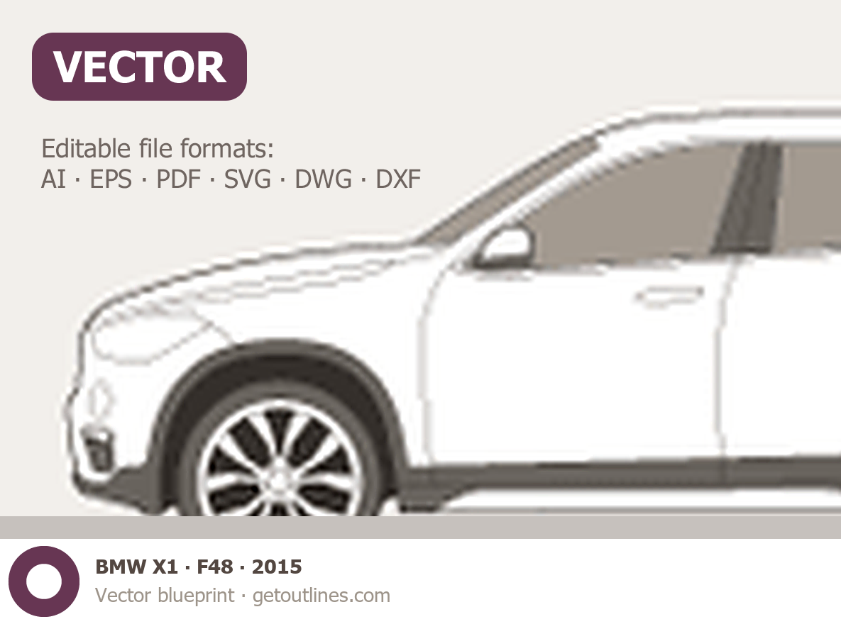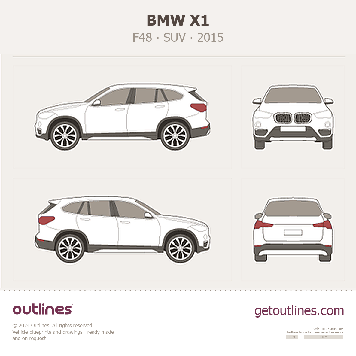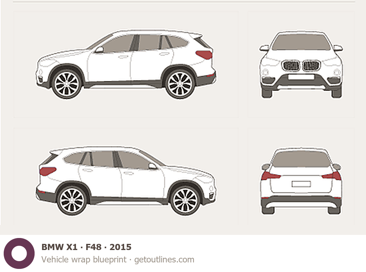 This 2015 BMW X1 F48 SUV blueprint helps designers, wrap studios, and 3D artists simplify their workflow and save valuable time for creative work instead of routine tasks.