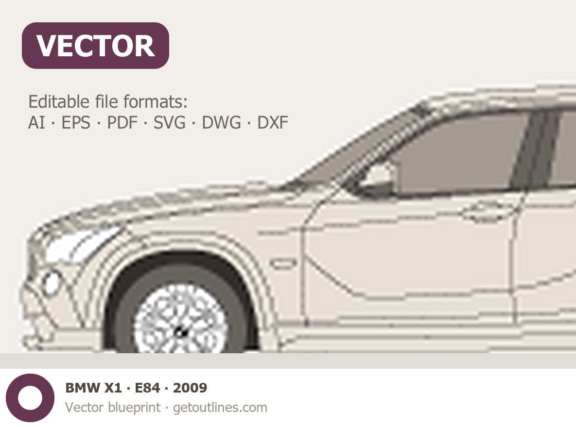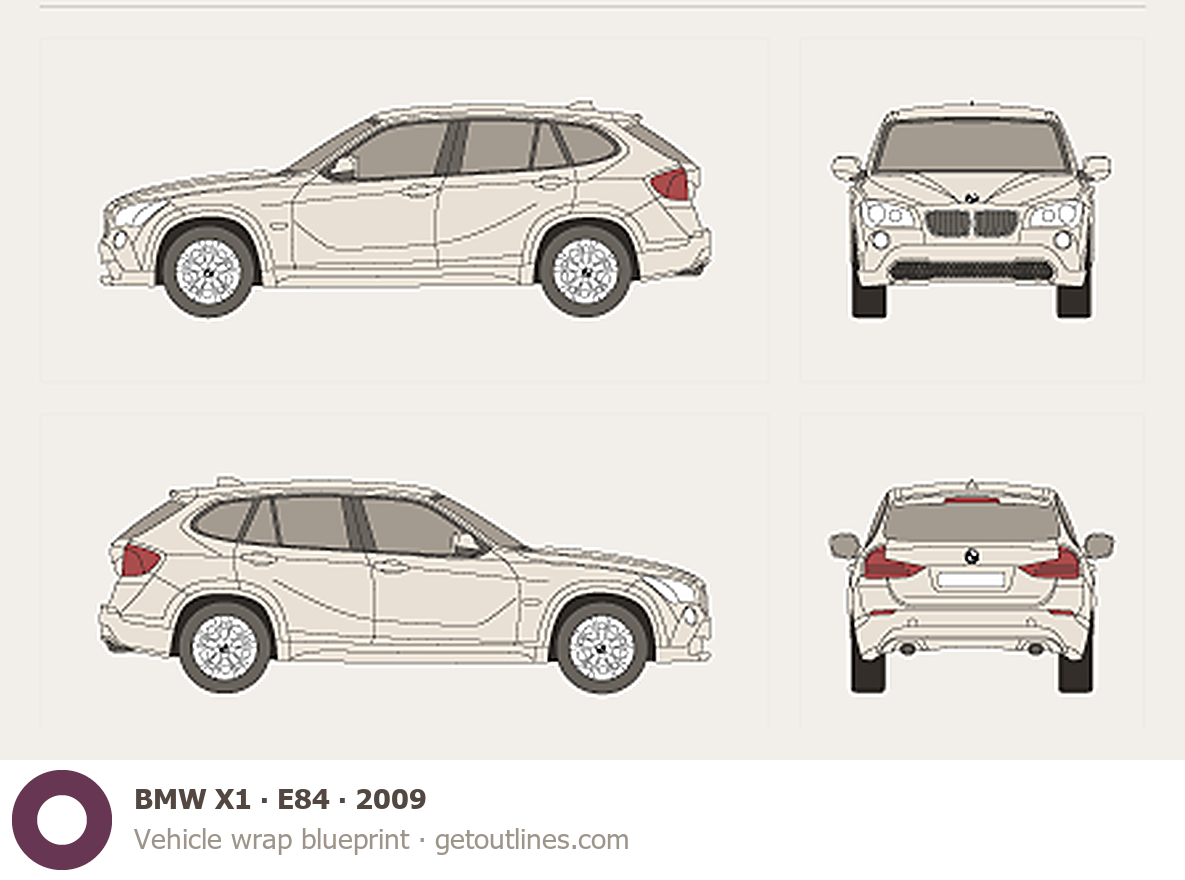Buy this BMW X1 E84 blueprint and line drawing in high-quality editable vector file formats. Best for 3D and car wrap design.