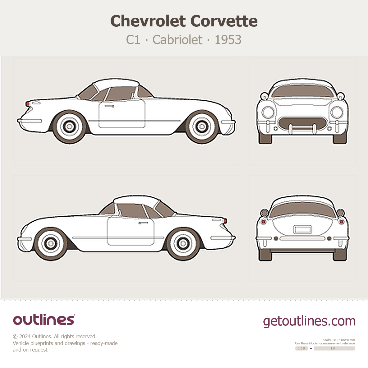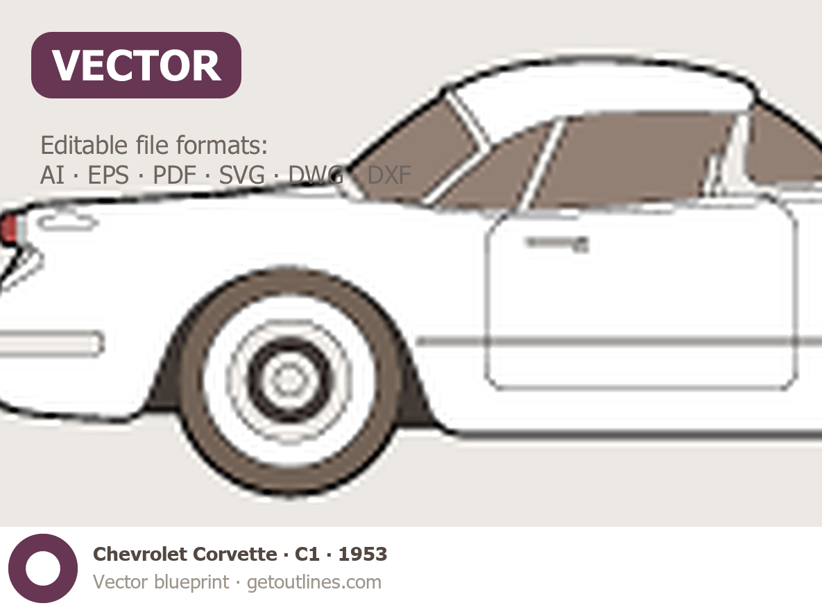 Buy this Chevrolet Corvette С1 blueprint and line drawing in high-quality editable vector file formats. Best for 3D and car wrap design.