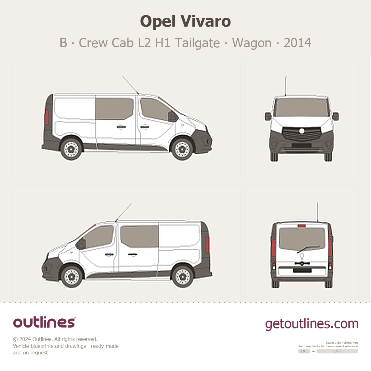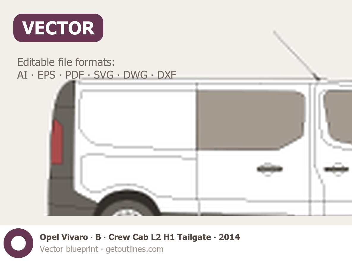 This 2014 Opel Vivaro B Crew Cab L2 H1 Tailgate Wagon blueprint helps designers, wrap studios, and 3D artists simplify their workflow and save valuable time for creative work instead of routine tasks.