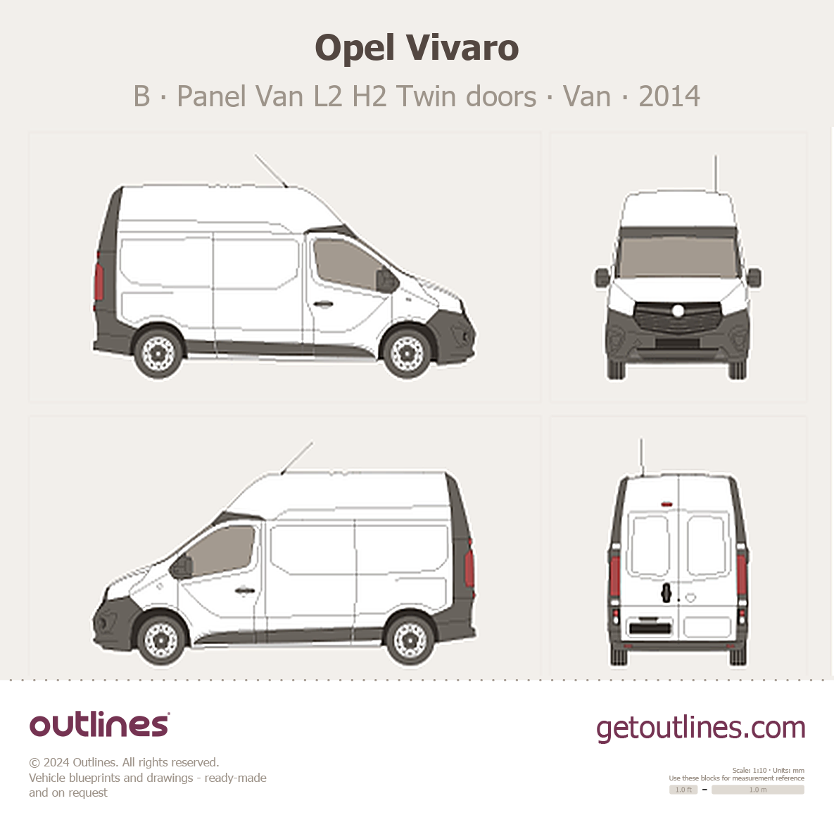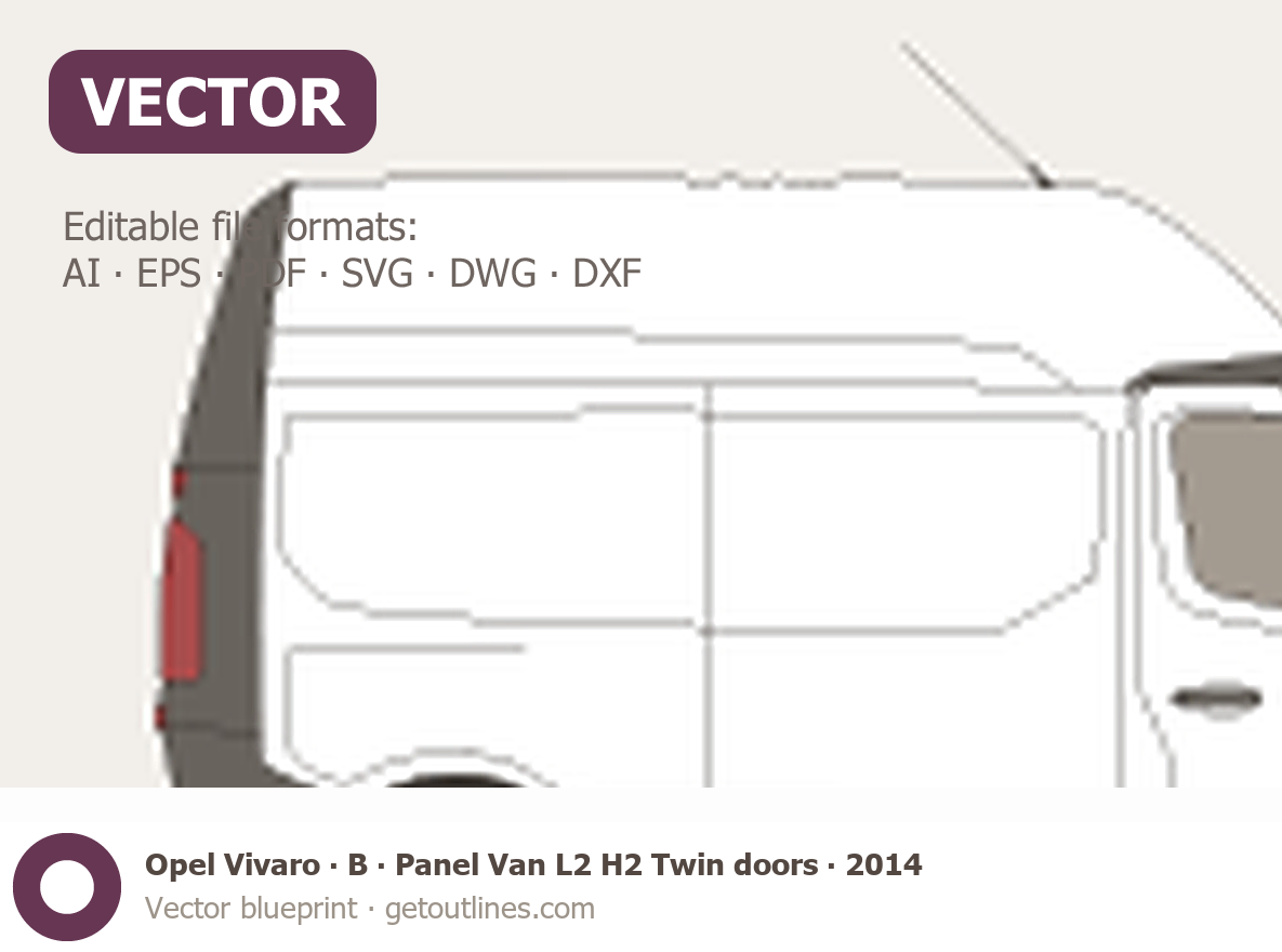 This 2014 Opel Vivaro B Panel Van L2 H2 Twin doors Van blueprint helps designers, wrap studios, and 3D artists simplify their workflow and save valuable time for creative work instead of routine tasks.
