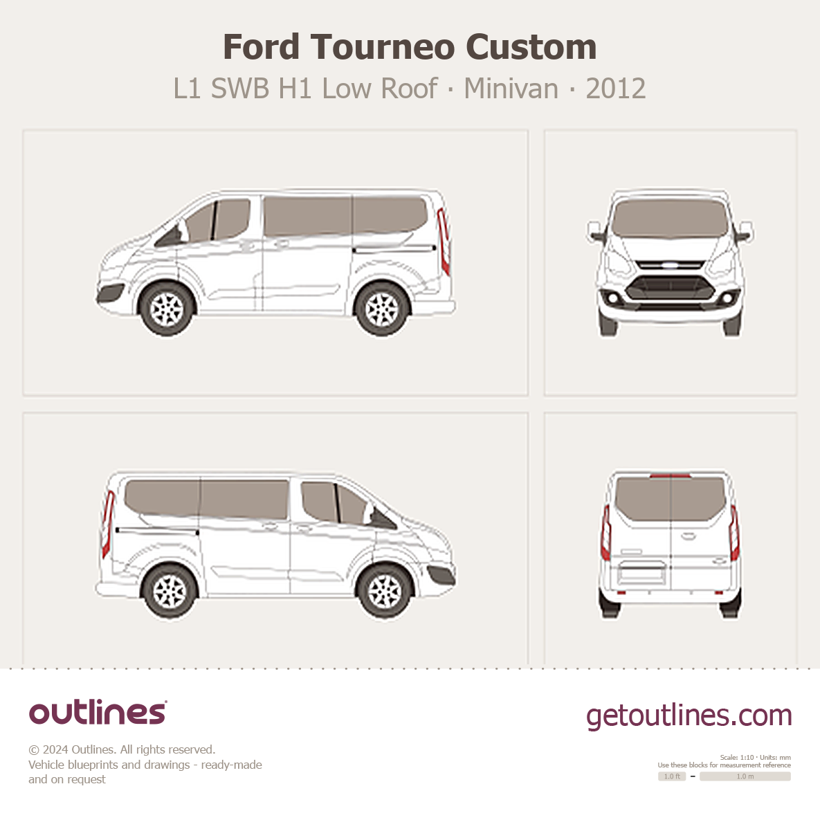 This 2012 Ford Tourneo Custom L1 SWB H1 Low Roof Minivan blueprint helps designers, wrap studios, and 3D artists simplify their workflow and save valuable time for creative work instead of routine tasks.