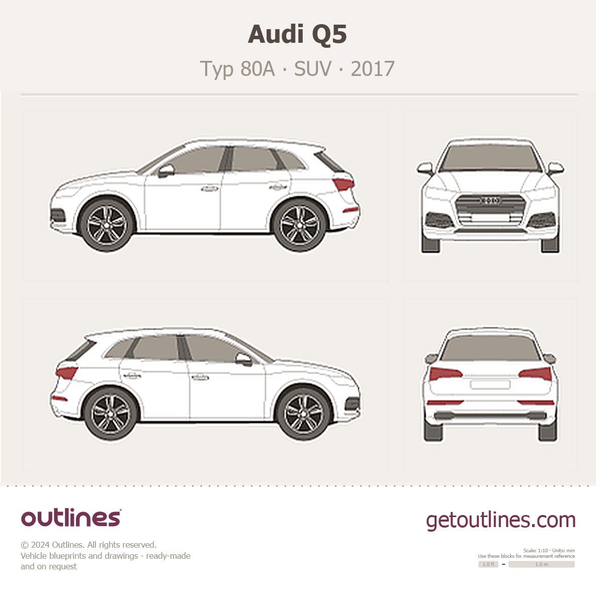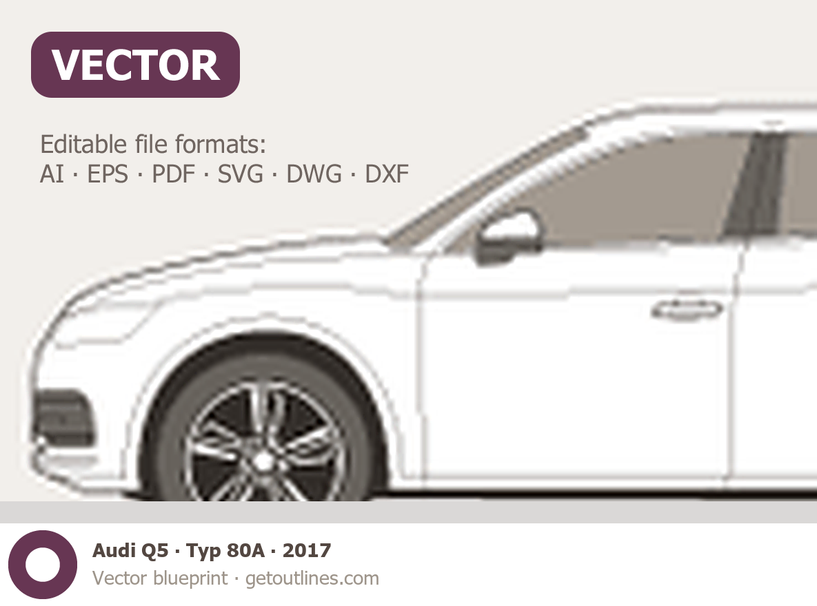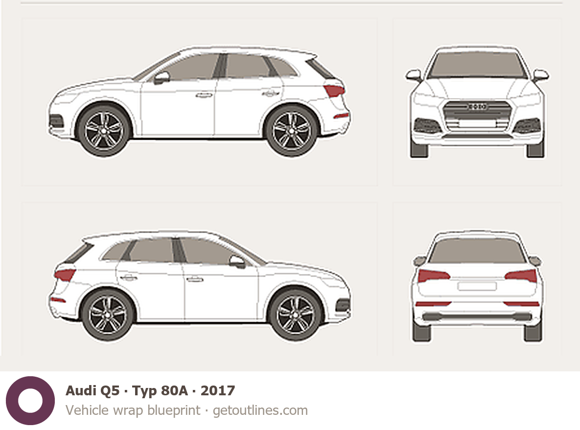 This 2017 Audi Q5 Typ 80A SUV blueprint helps designers, wrap studios, and 3D artists simplify their workflow and save valuable time for creative work instead of routine tasks.