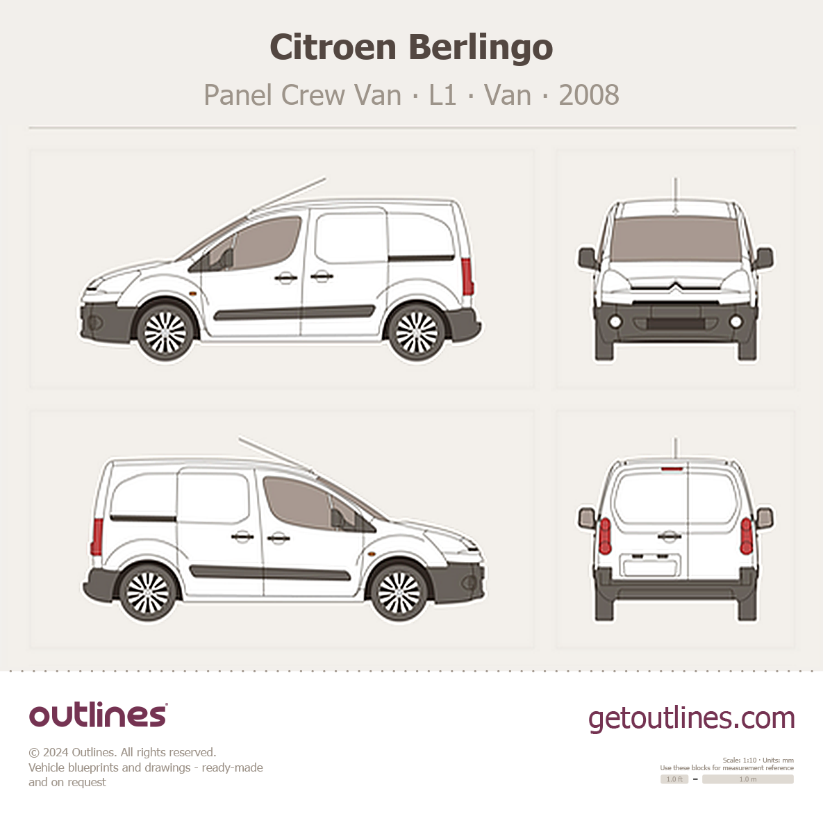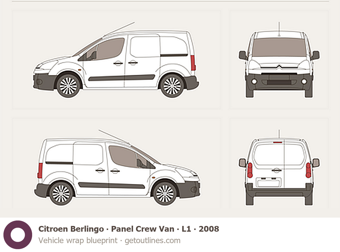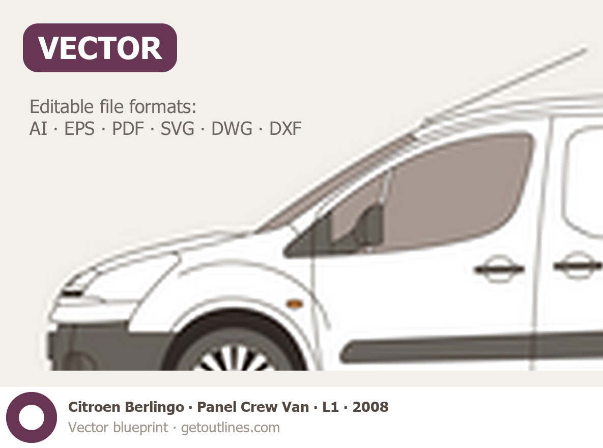 Buy this Citroen Berlingo Panel Crew Van blueprint and line drawing in high-quality editable vector file formats. Best for 3D and car wrap design.