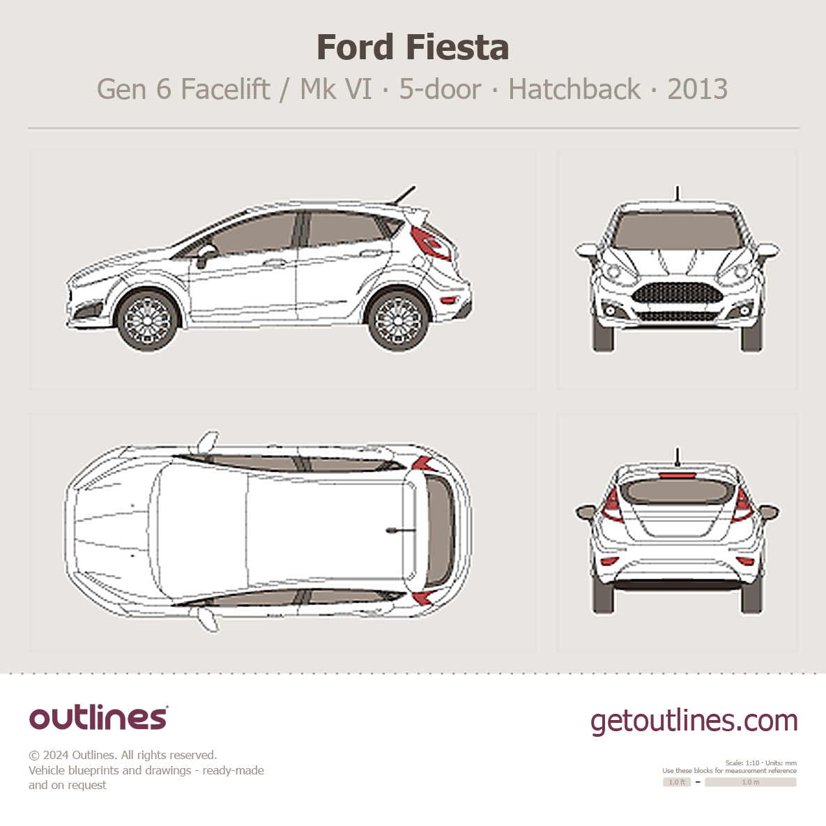 2013 Ford Fiesta Gen 6 Facelift / Mk VI 5-door Hatchback blueprint