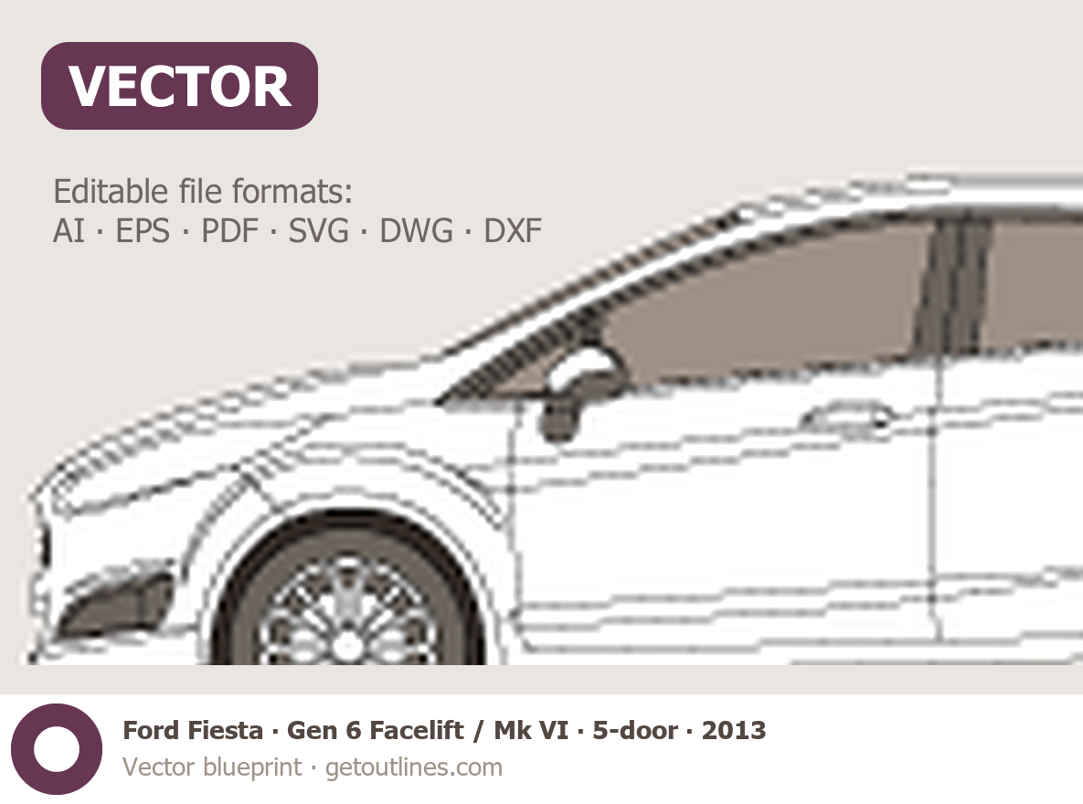 Buy this Ford Fiesta Gen 6 Facelift / Mk VI blueprint and line drawing in high-quality editable vector file formats. Best for 3D and car wrap design.