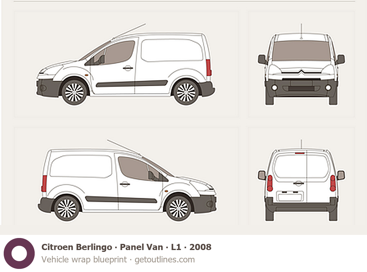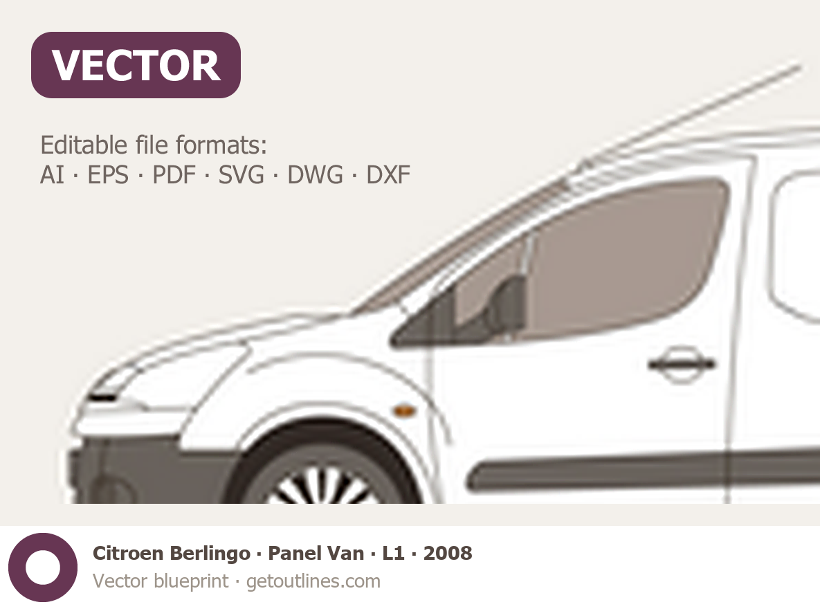 Buy this Citroen Berlingo Panel Van blueprint and line drawing in high-quality editable vector file formats. Best for 3D and car wrap design.