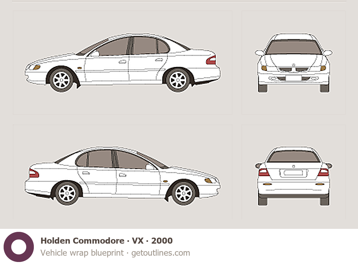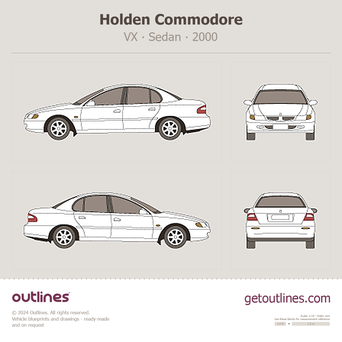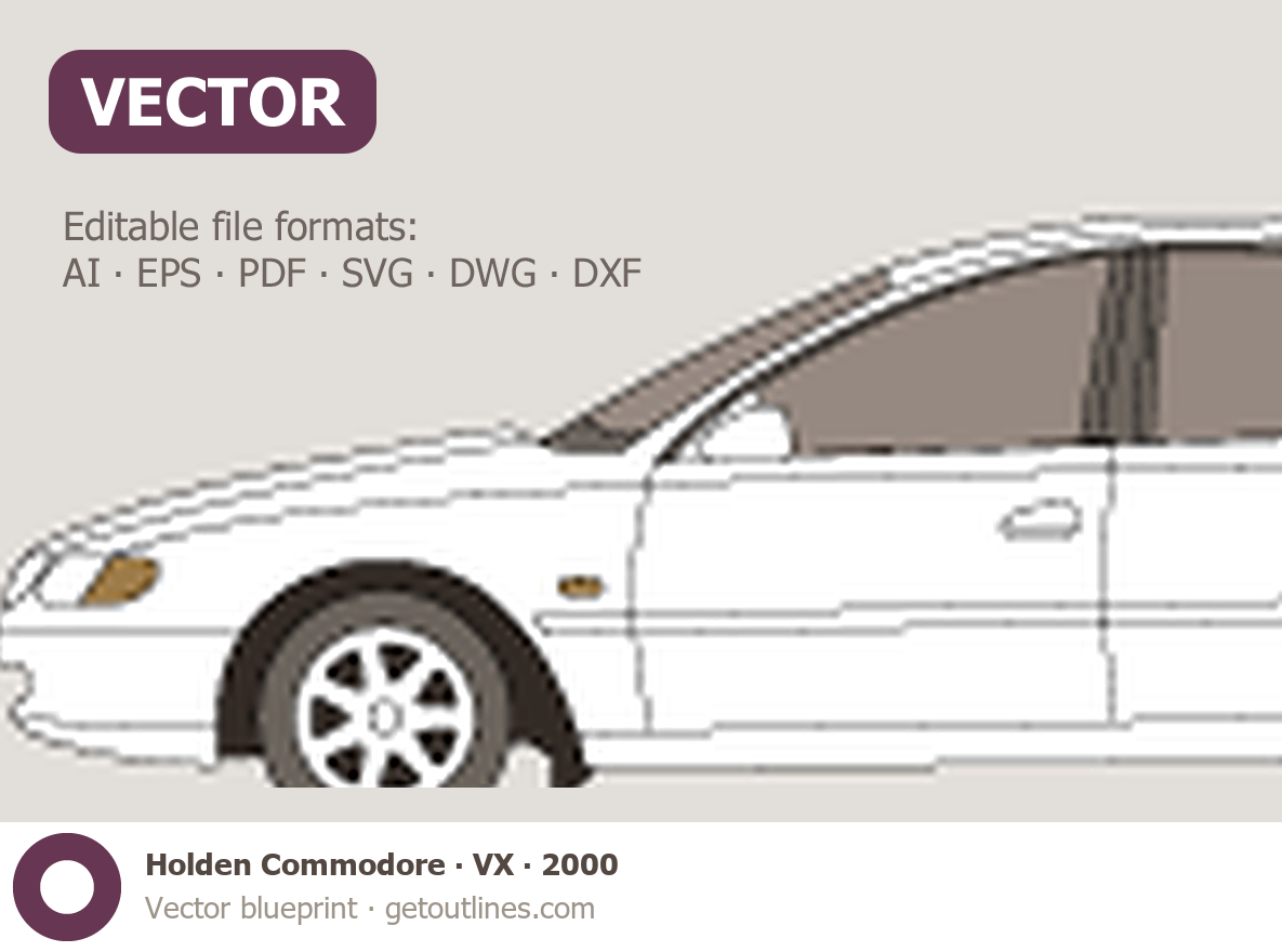 Buy this Holden Commodore VX blueprint and line drawing in high-quality editable vector file formats. Best for 3D and car wrap design.