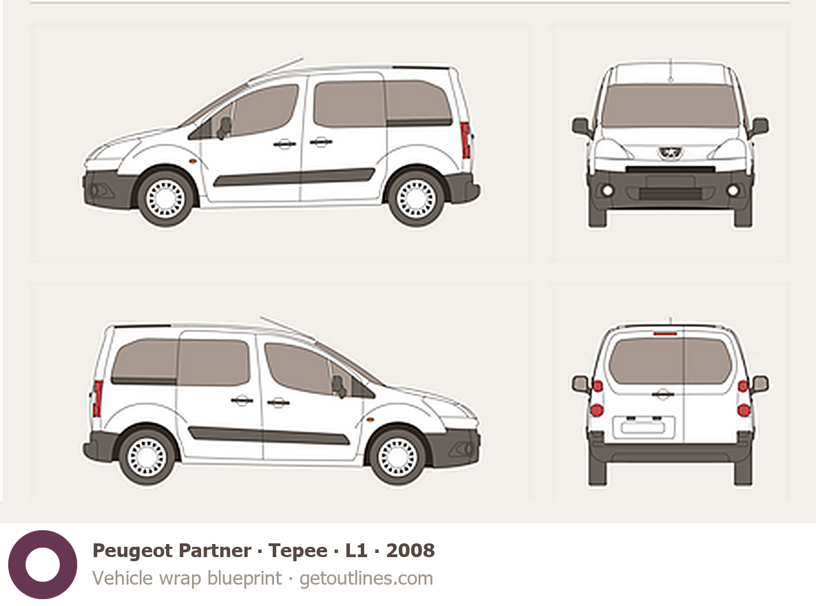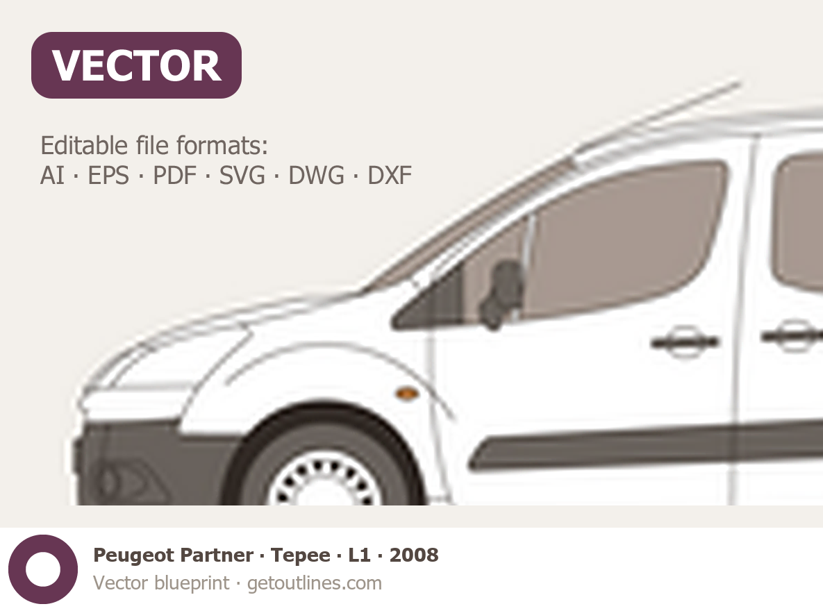 Buy this Peugeot Partner Tepee blueprint and line drawing in high-quality editable vector file formats. Best for 3D and car wrap design.