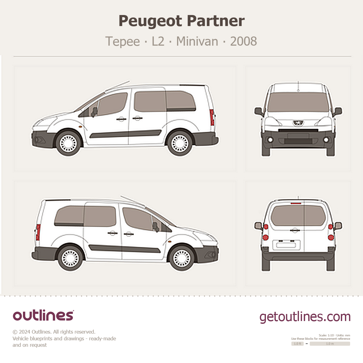 Buy this Peugeot Partner Tepee blueprint and line drawing in high-quality editable vector file formats. Best for 3D and car wrap design.