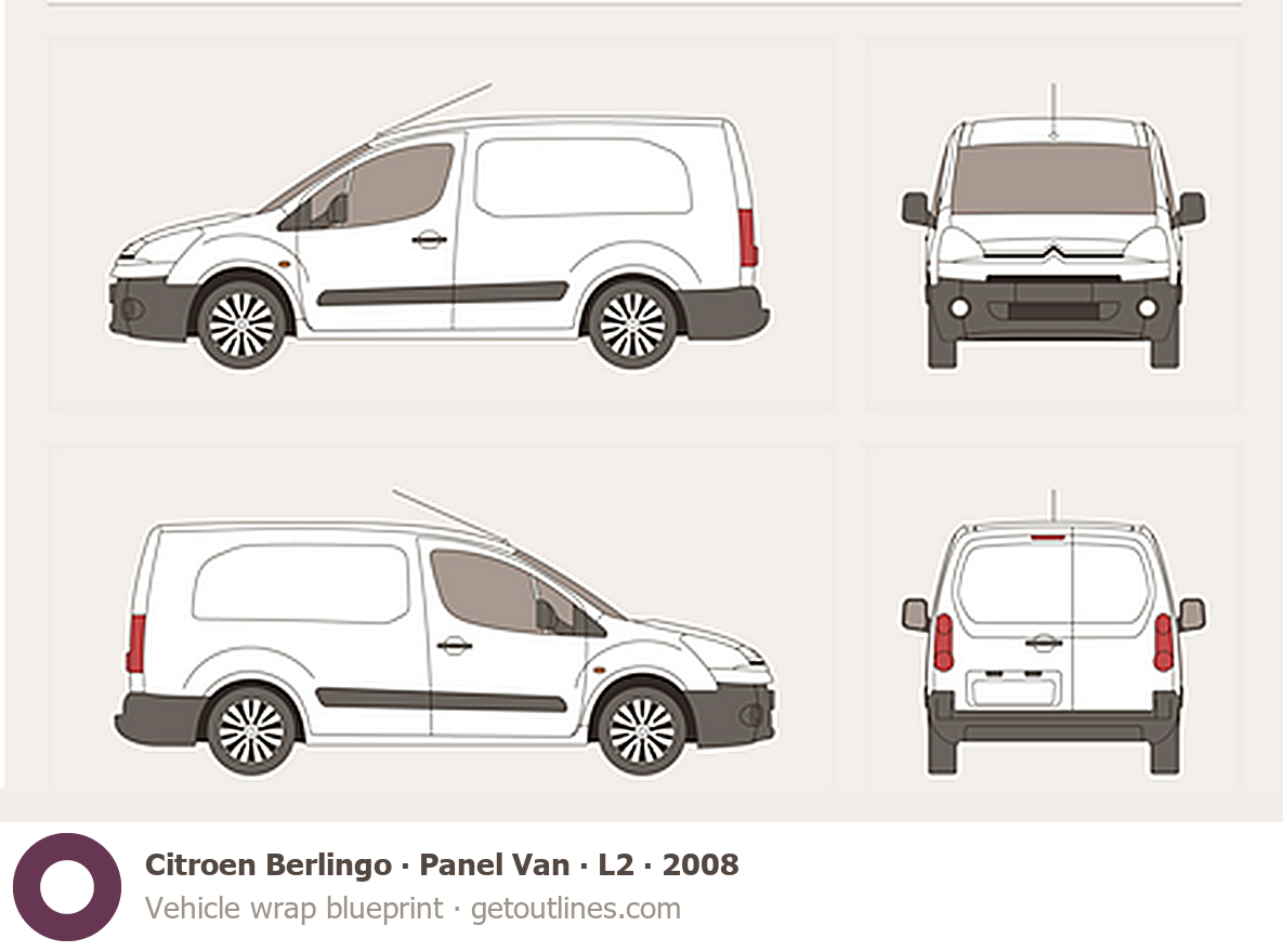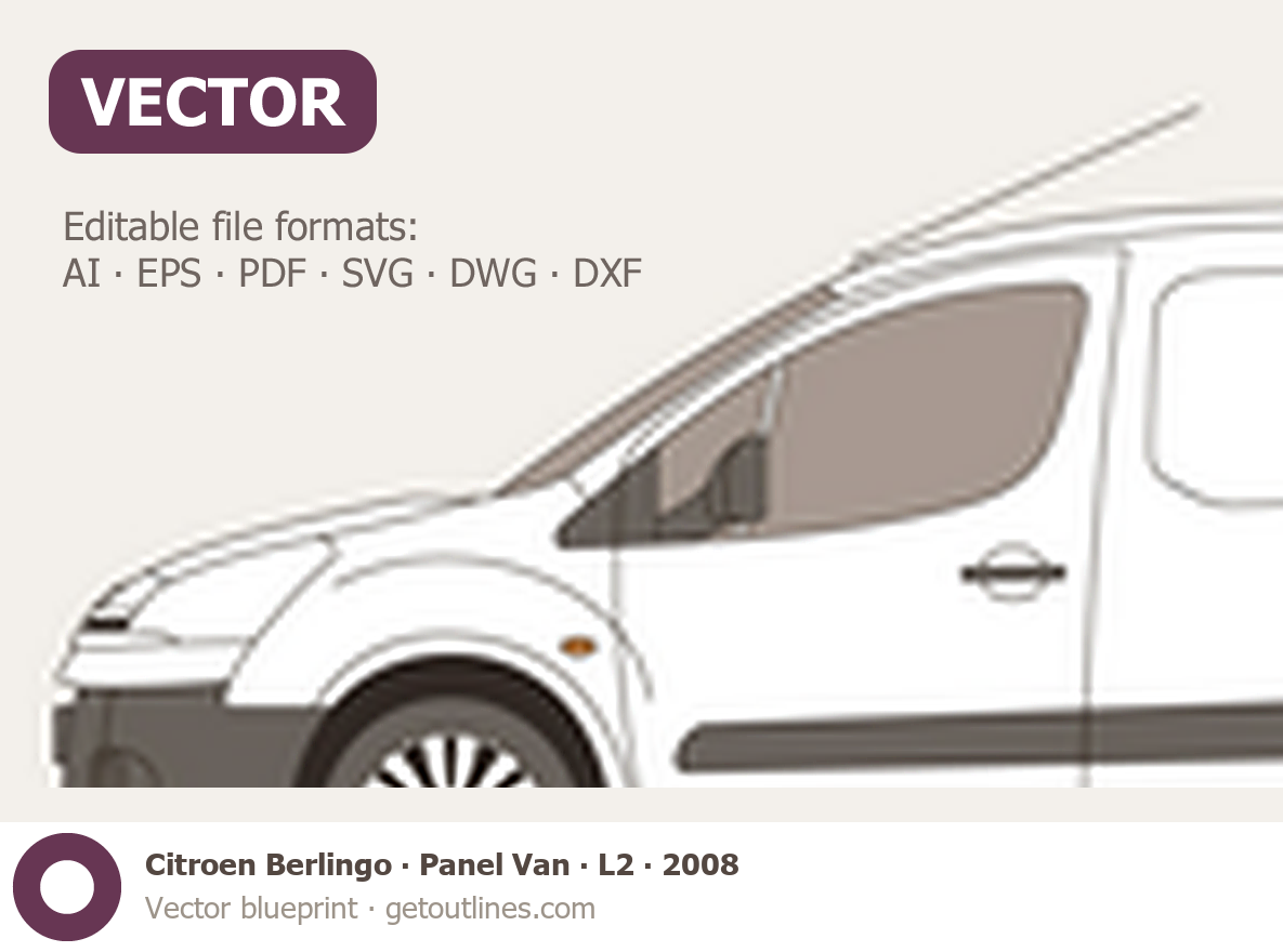 Buy this Citroen Berlingo Panel Van blueprint and line drawing in high-quality editable vector file formats. Best for 3D and car wrap design.