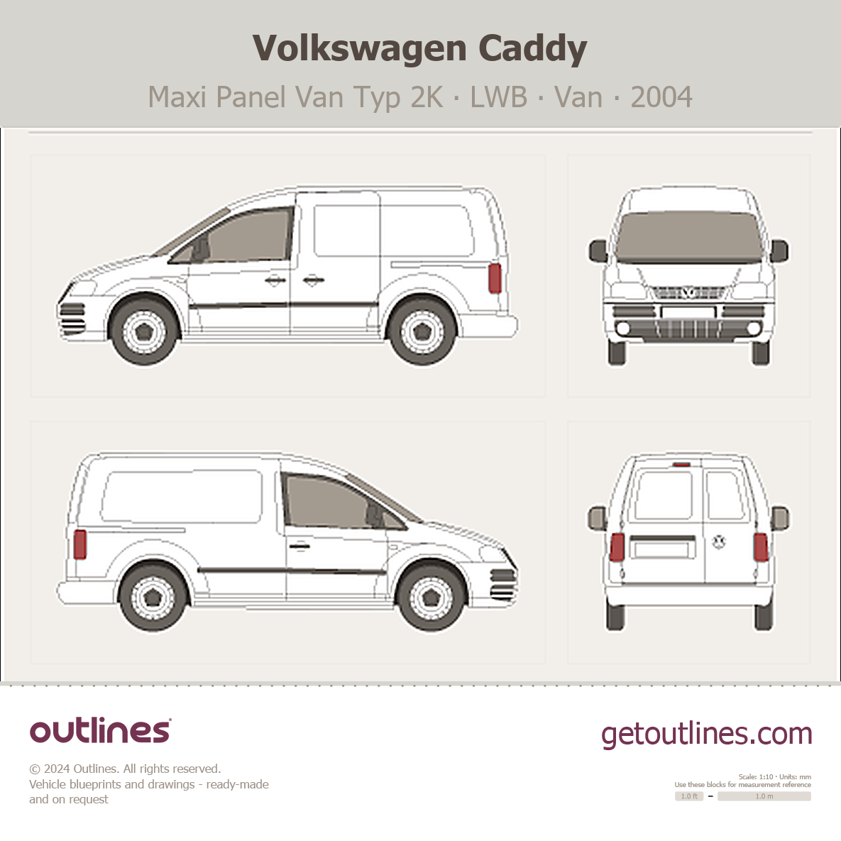 2004 Volkswagen Caddy Maxi Panel Van Typ 2K LWB Van blueprint