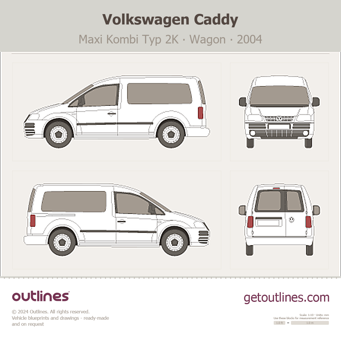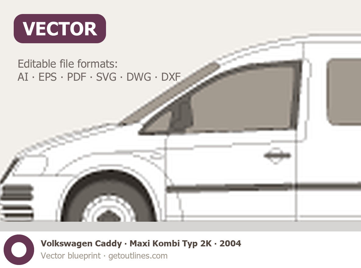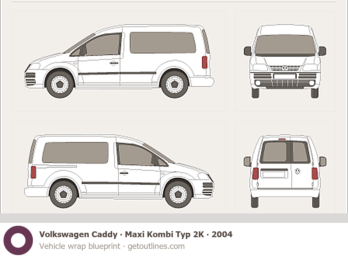 This 2004 Volkswagen Caddy Maxi Kombi Typ 2K Wagon blueprint helps designers, wrap studios, and 3D artists simplify their workflow and save valuable time for creative work instead of routine tasks.