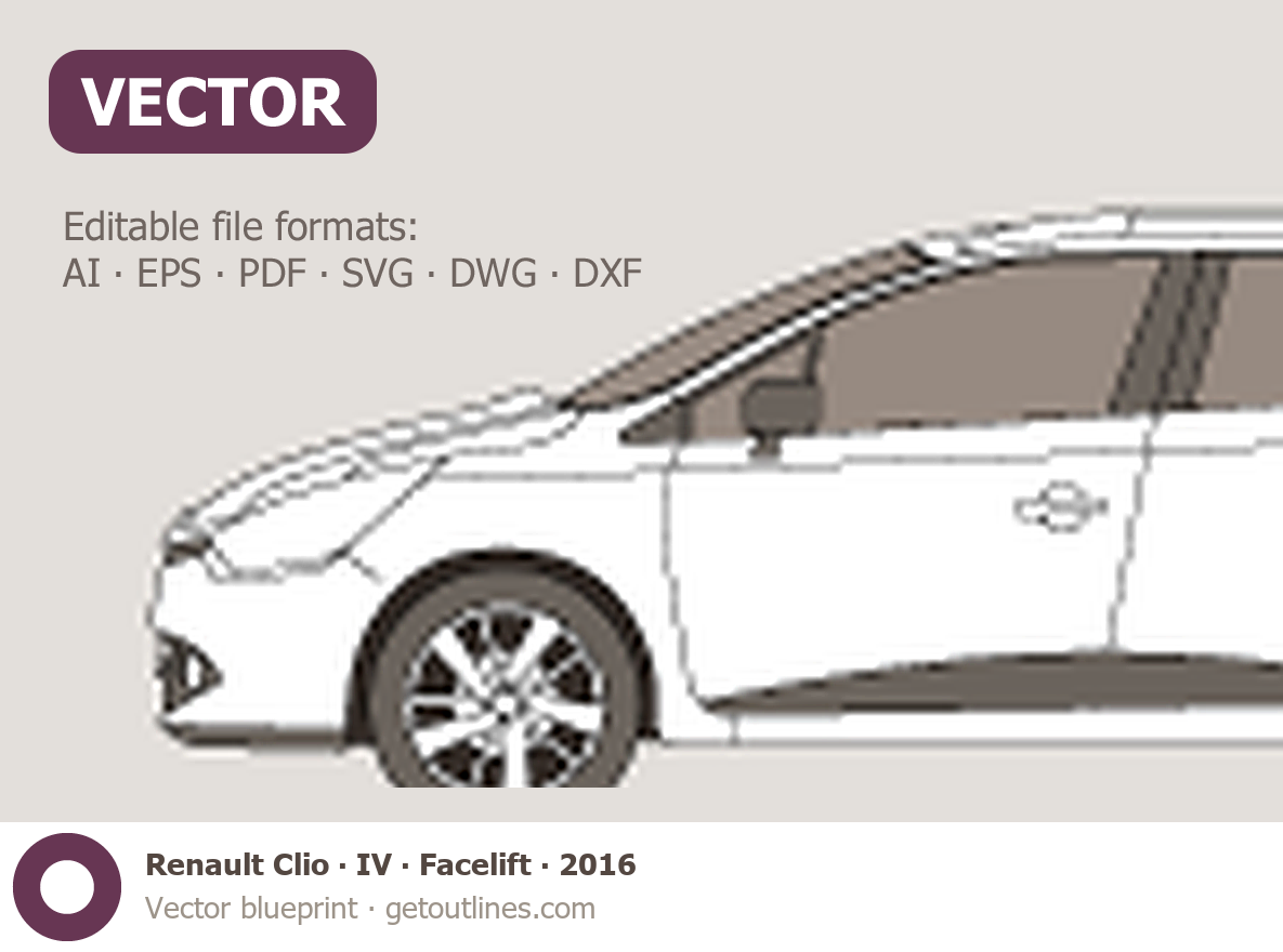 Buy this Renault Clio IV blueprint and line drawing in high-quality editable vector file formats. Best for 3D and car wrap design.
