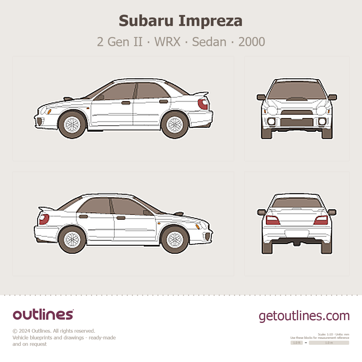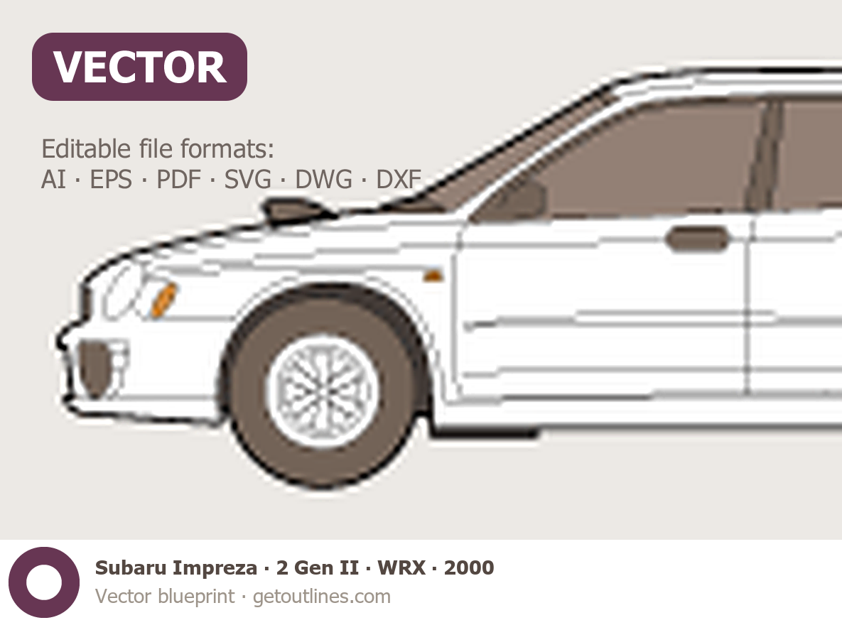 Buy this Subaru Impreza 2 Gen II blueprint and line drawing in high-quality editable vector file formats. Best for 3D and car wrap design.