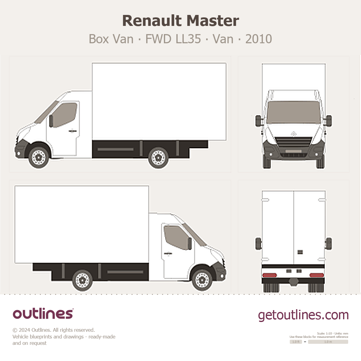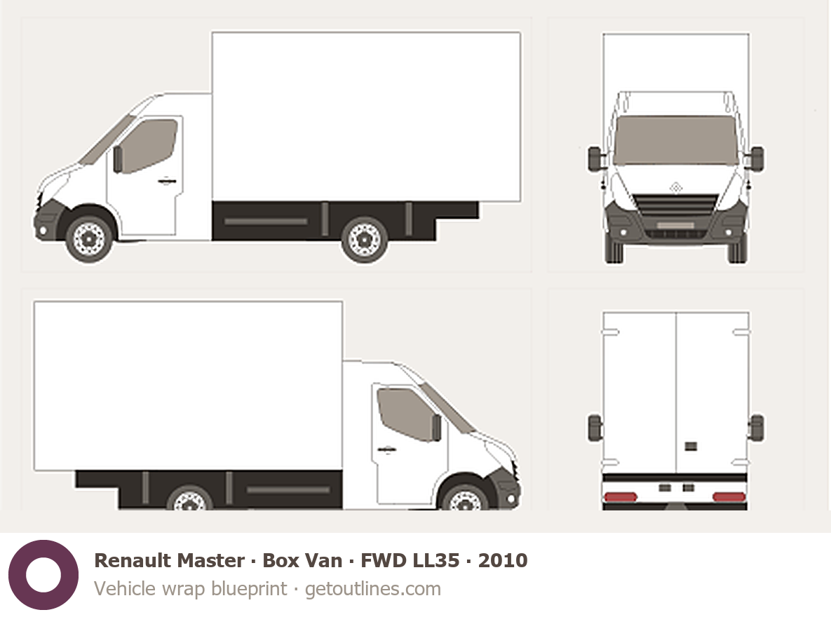 This 2010 Renault Master Box Van FWD LL35 Van blueprint helps designers, wrap studios, and 3D artists simplify their workflow and save valuable time for creative work instead of routine tasks.