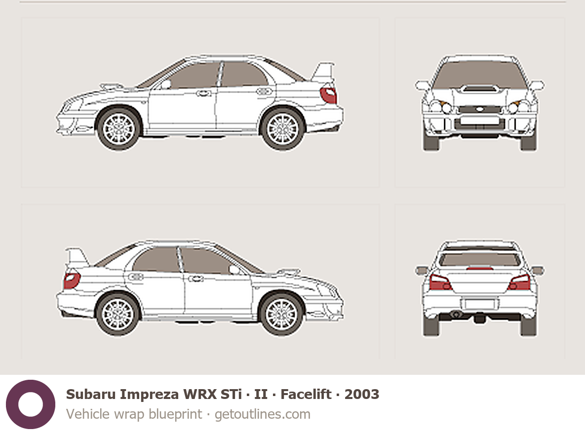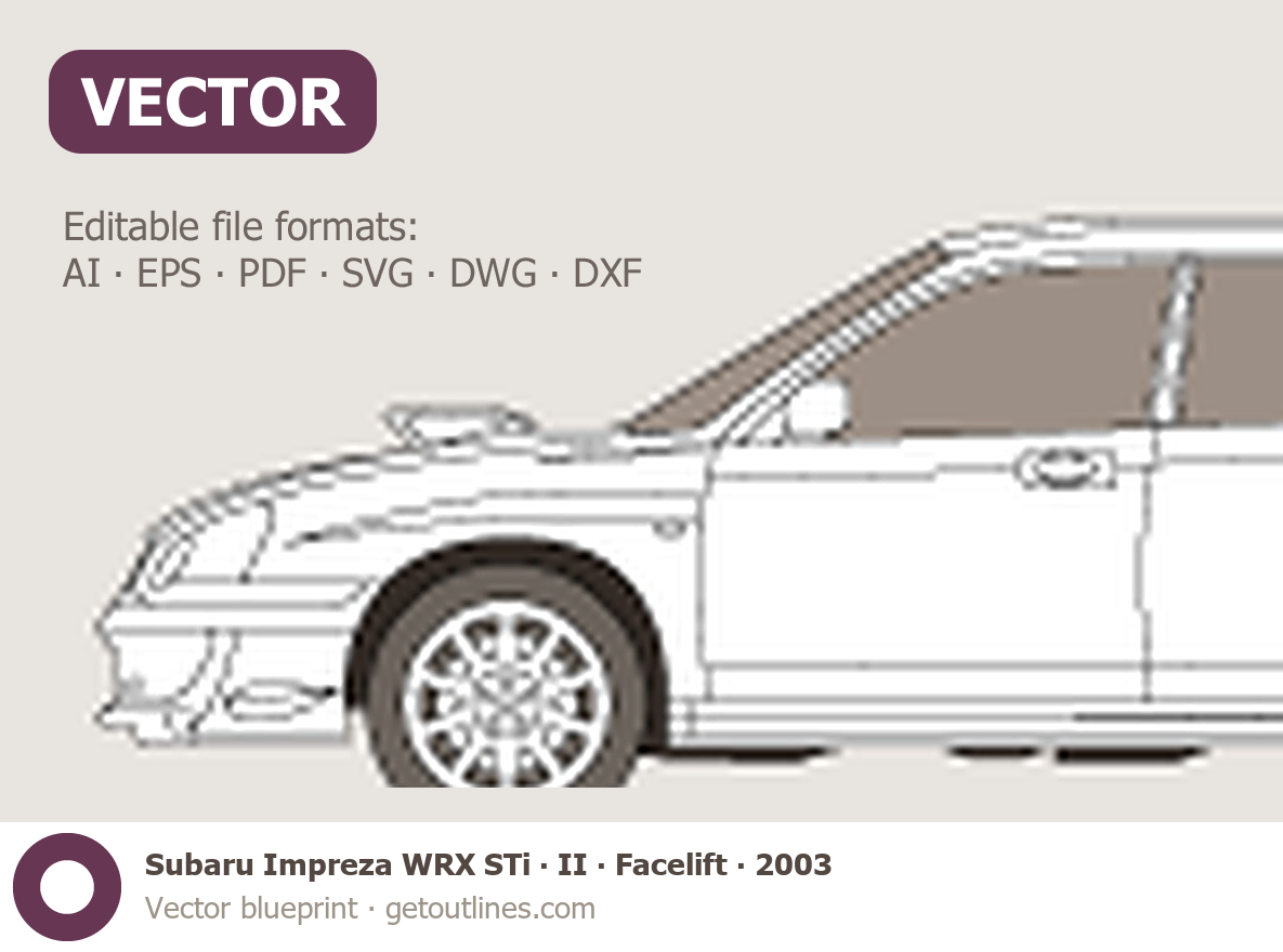 Buy this Subaru Impreza WRX STi II blueprint and line drawing in high-quality editable vector file formats. Best for 3D and car wrap design.