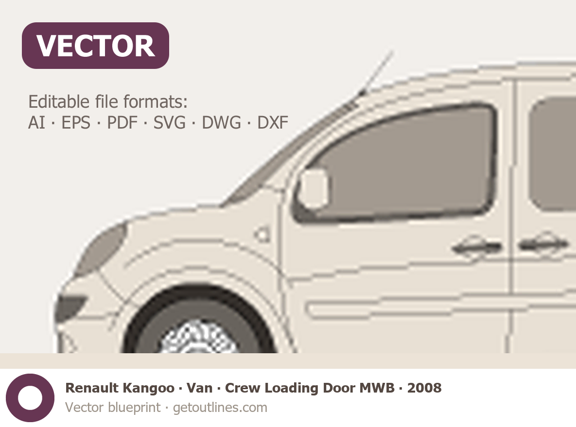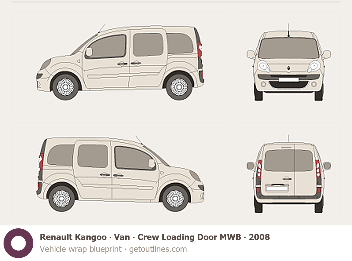 This 2008 Renault Kangoo Van Crew Loading Door MWB Wagon blueprint helps designers, wrap studios, and 3D artists simplify their workflow and save valuable time for creative work instead of routine tasks.