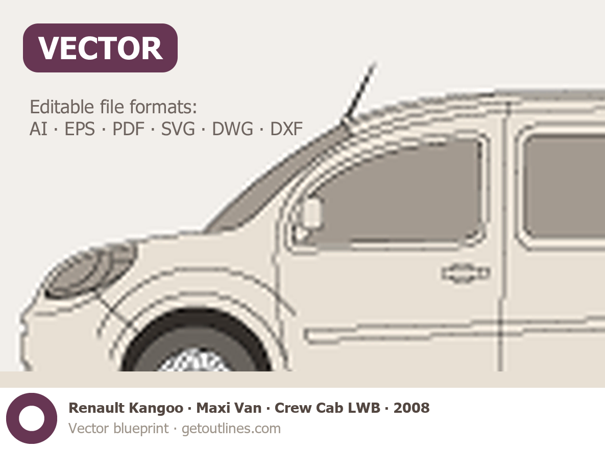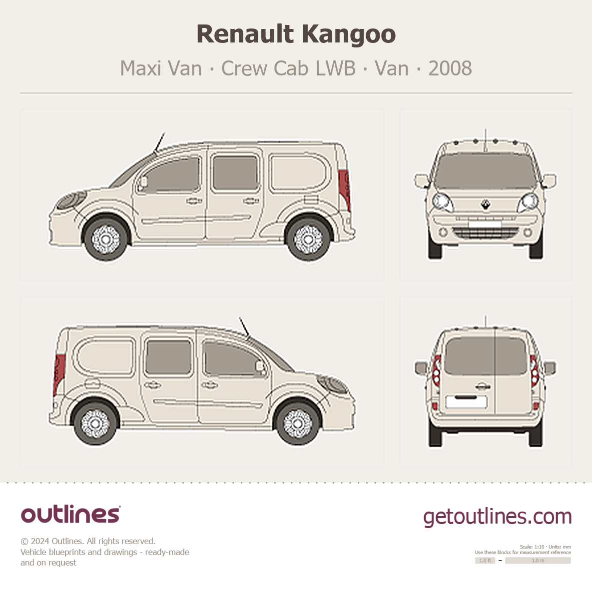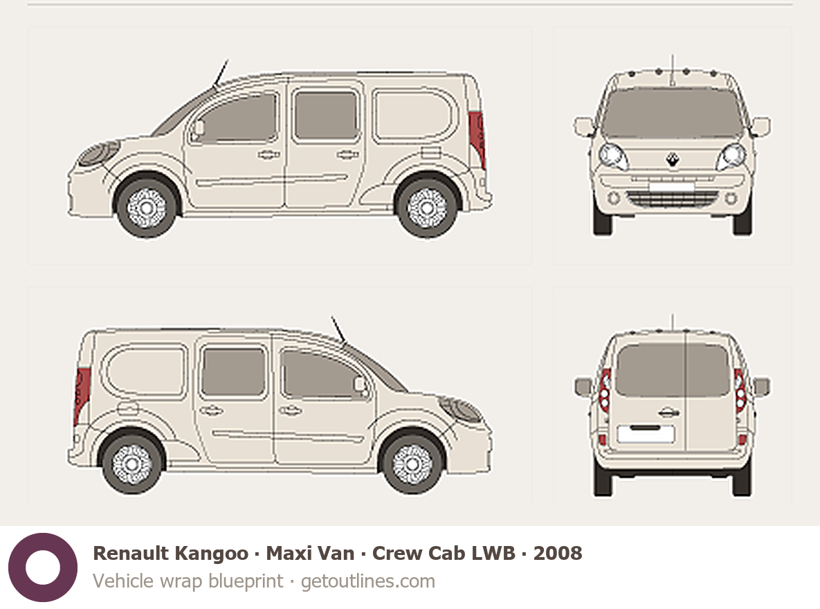 This 2008 Renault Kangoo Maxi Van Crew Cab LWB Van blueprint helps designers, wrap studios, and 3D artists simplify their workflow and save valuable time for creative work instead of routine tasks.